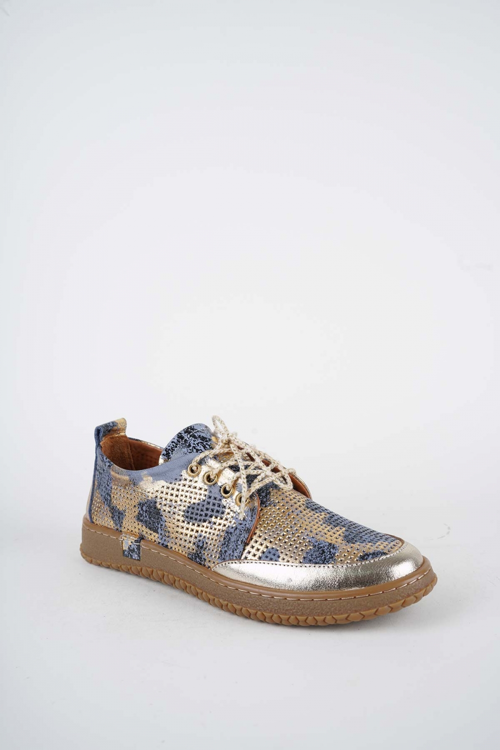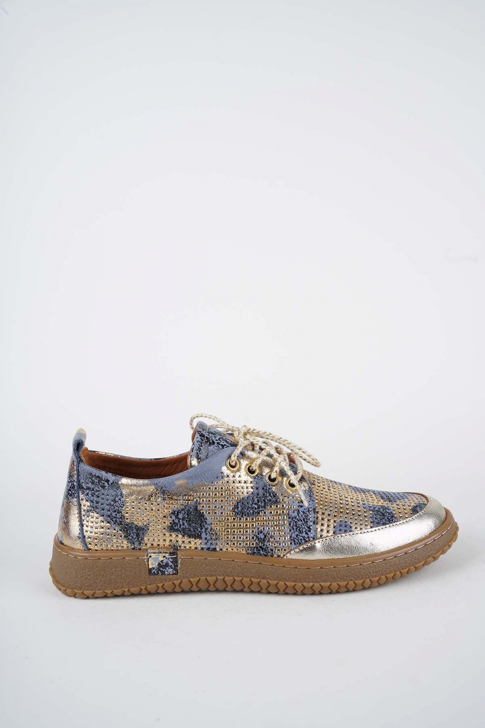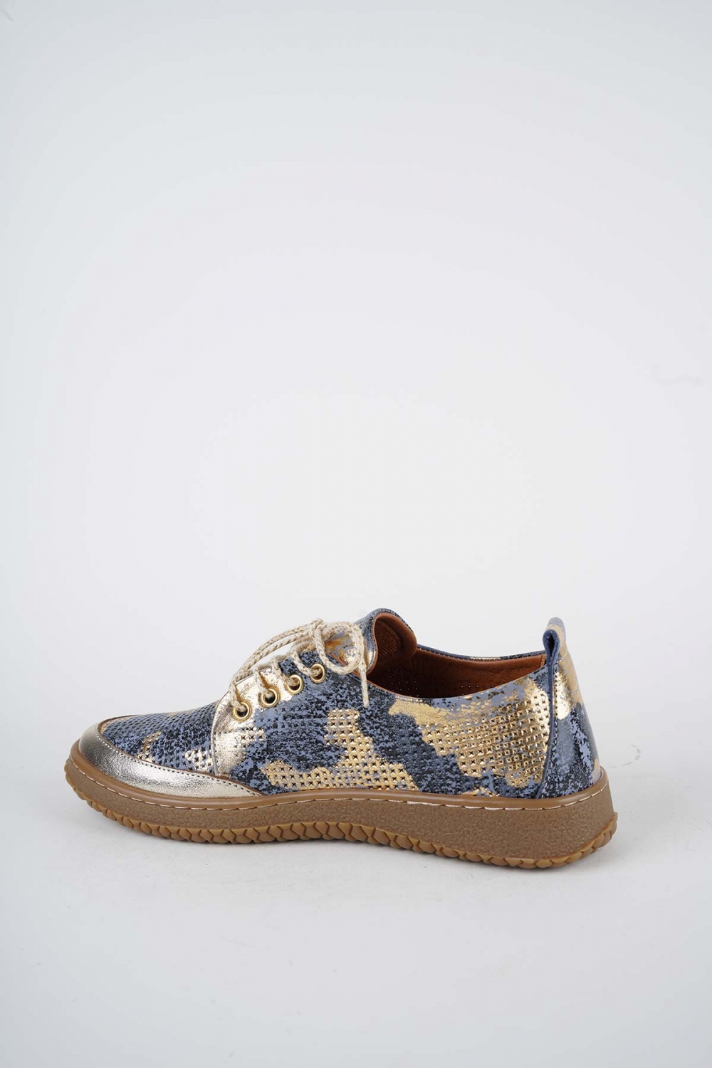 Hakiki Deri K.Mavi Baskılı-Altın Kadın Casual Ayakkabı 261186102