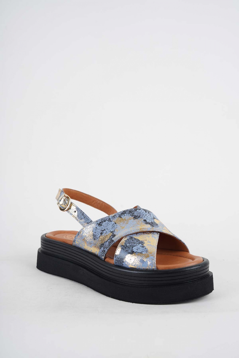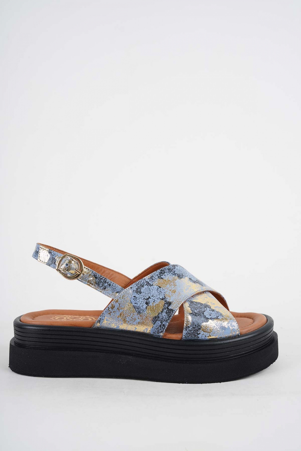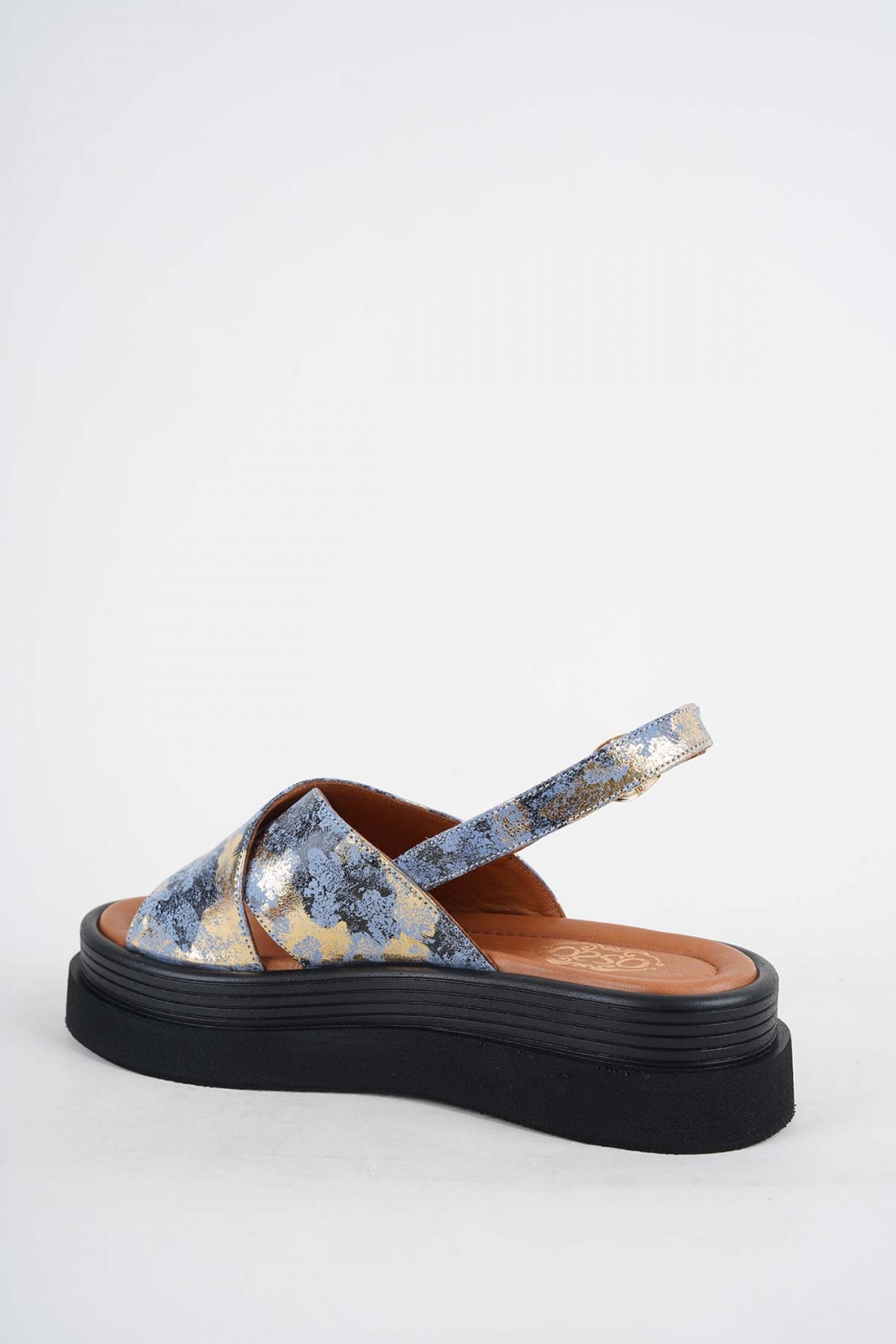 Hakiki Deri K.Mavi Baskılı Kadın Dolgu Topuklu Sandalet 251186506