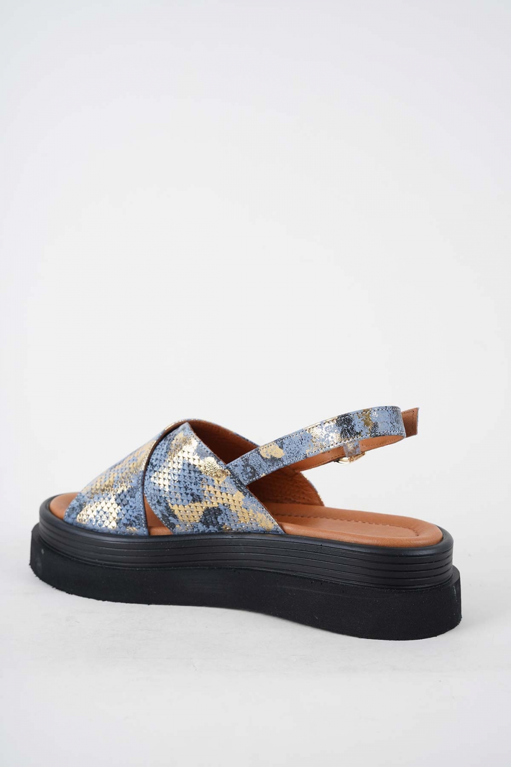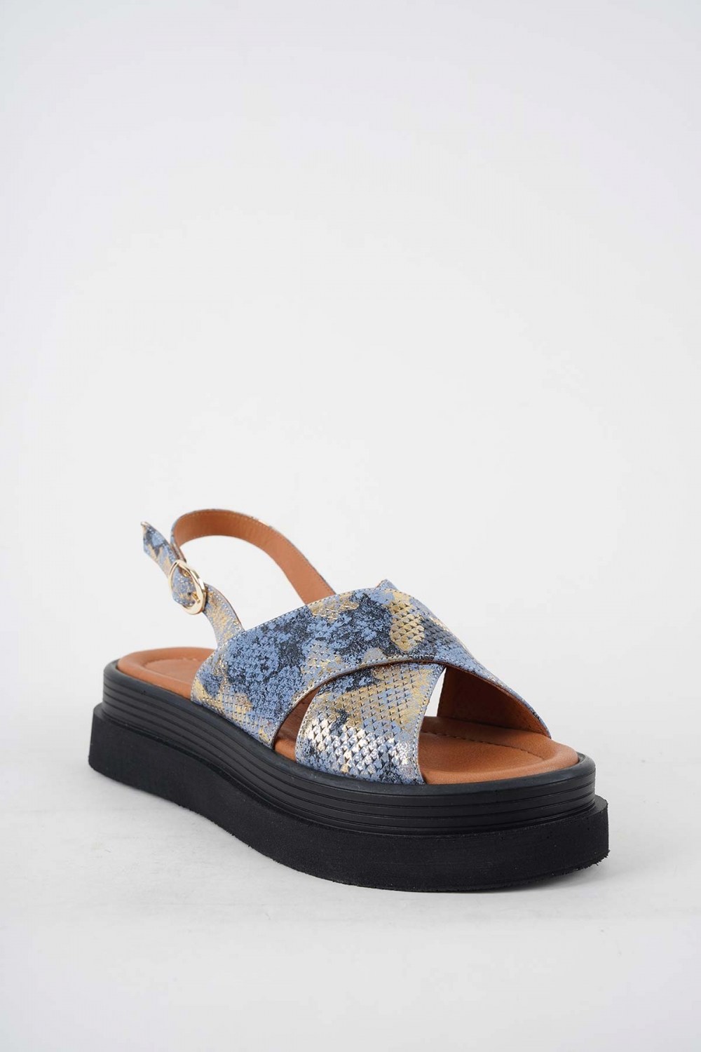 Hakiki Deri K.Mavi Baskılı Kadın Dolgu Topuklu Sandalet 251186507