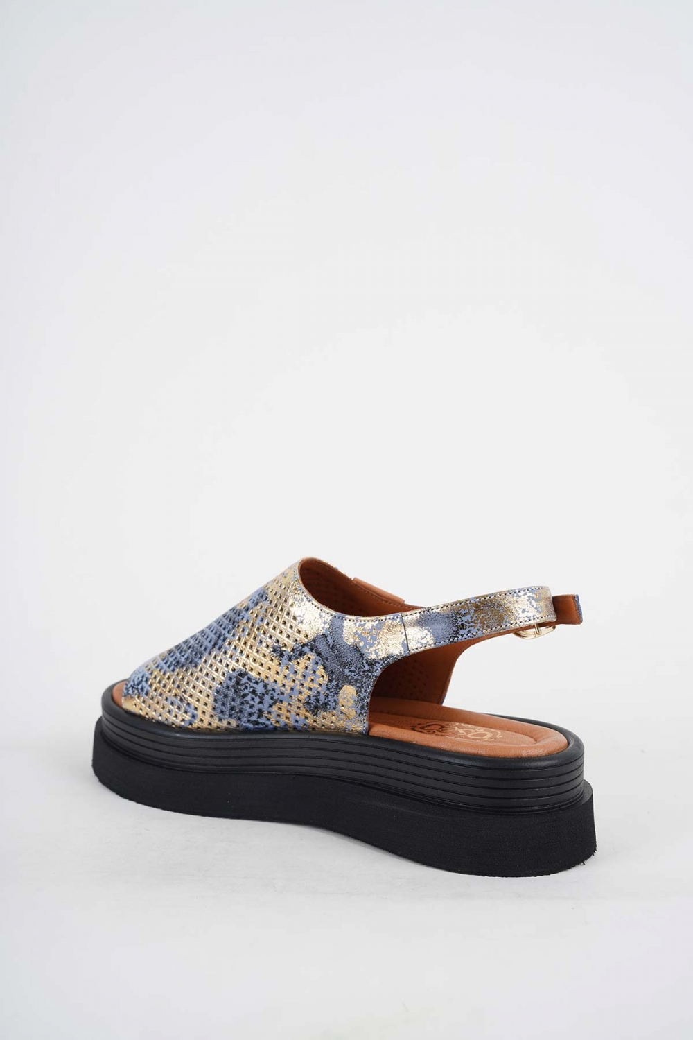 Hakiki Deri K.Mavi Baskılı-Taba Kadın Dolgu Topuklu Sandalet 251186505