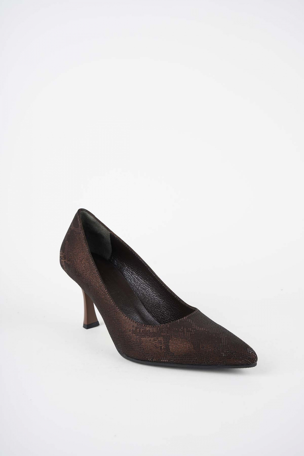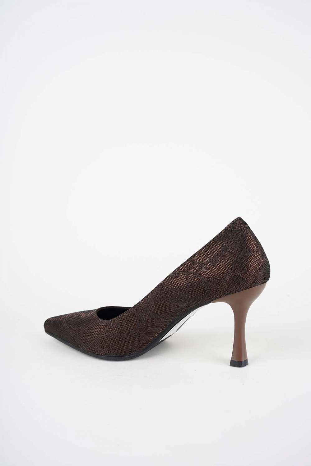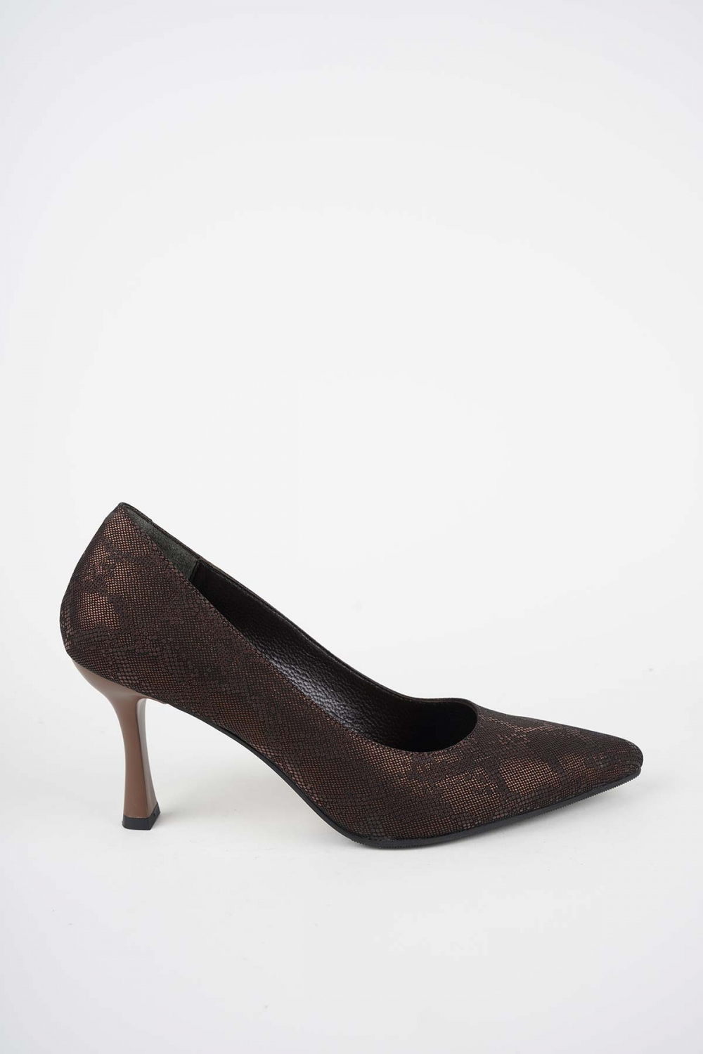 Hakiki Deri Kahve Baskılı Kadın Topuklu Ayakkabı 252105103