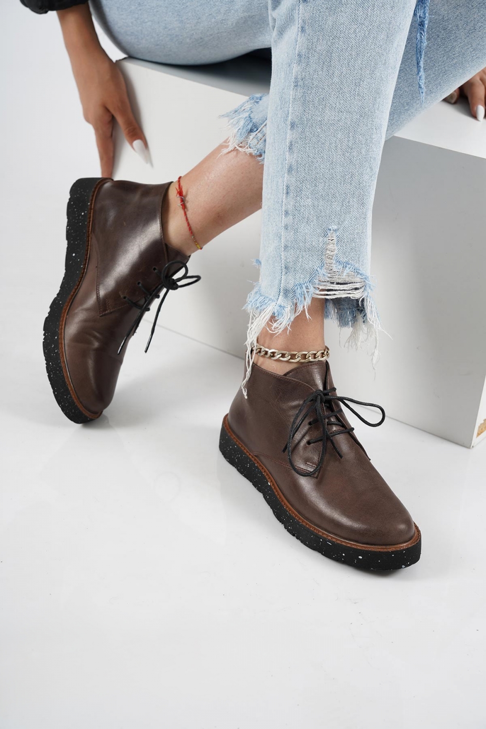 Hakiki Deri Kahve Flt. Kadın Casual Bot 252114202