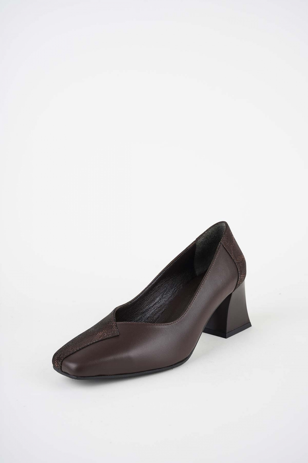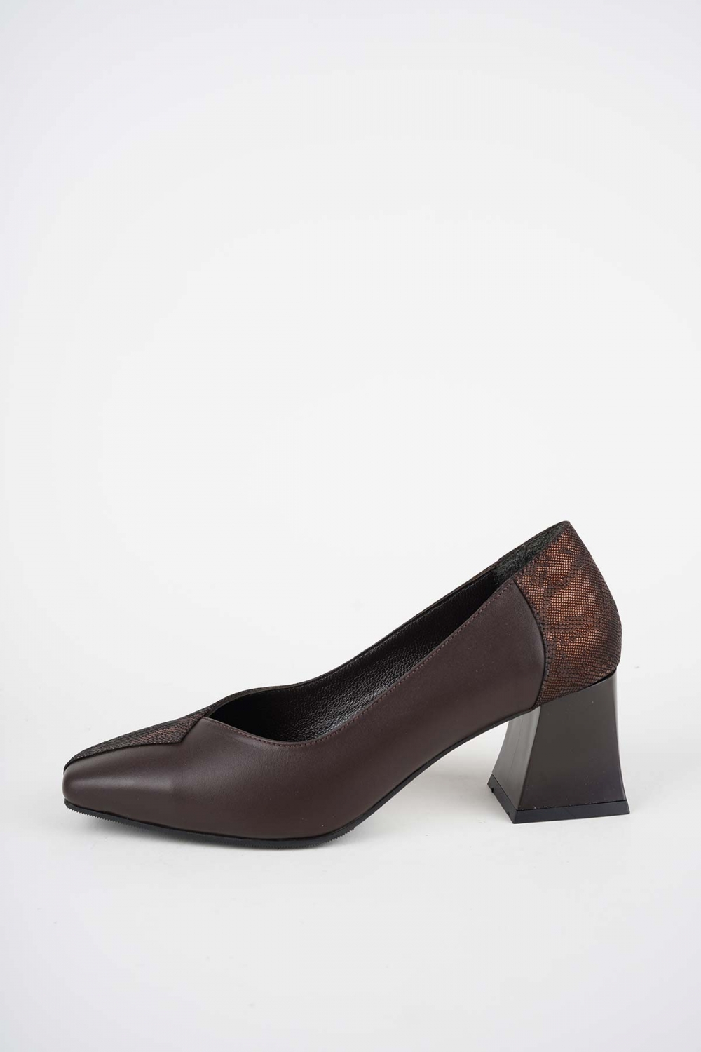 Hakiki Deri Kahve-Kahve Baskılı Kadın Topuklu Ayakkabı 252105110