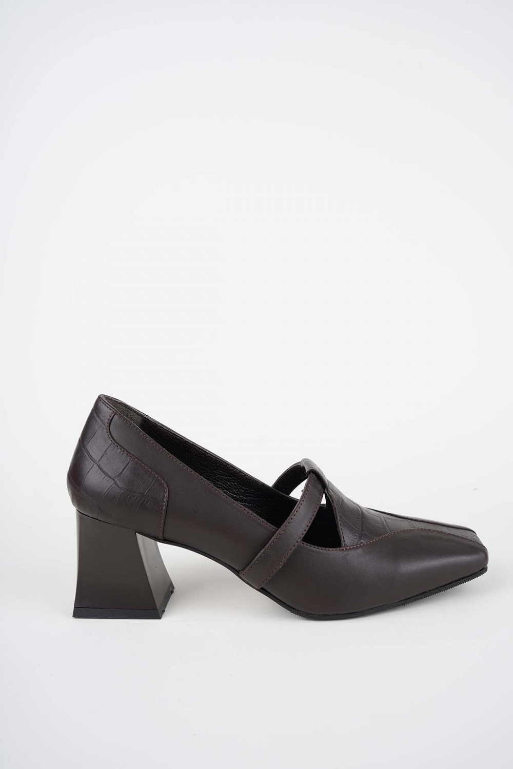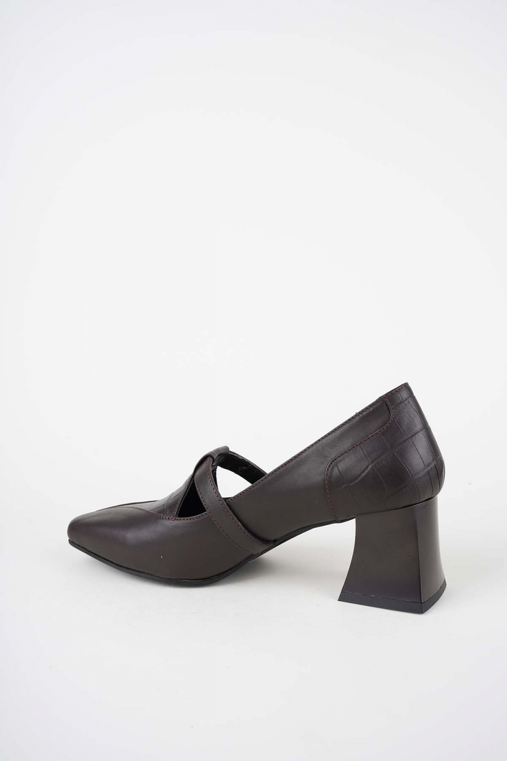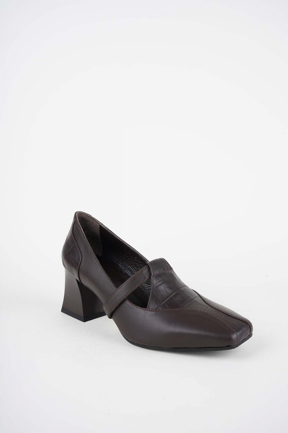 Hakiki Deri Kahve-Kahve Kroko Kadın Topuklu Ayakkabı 252105107