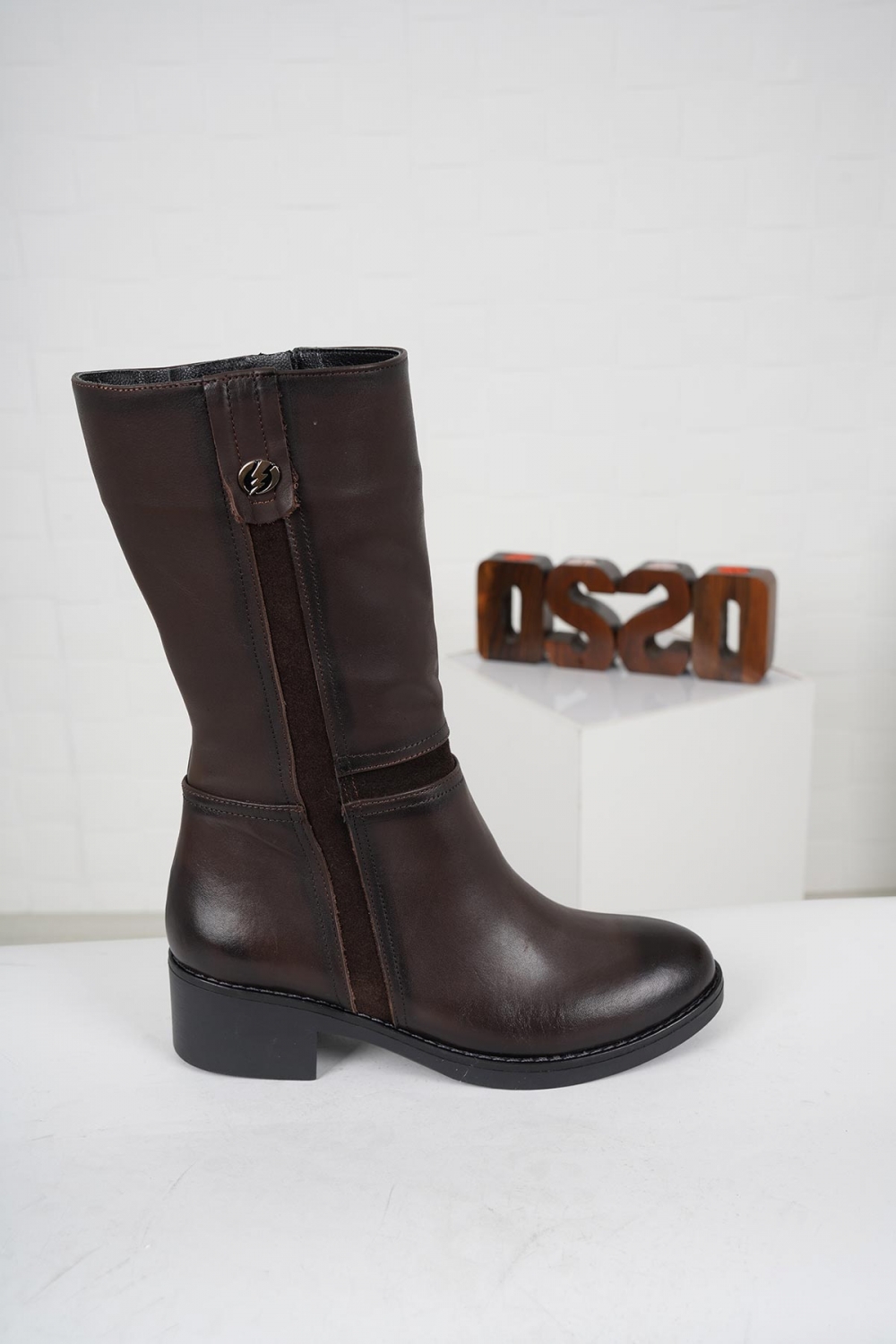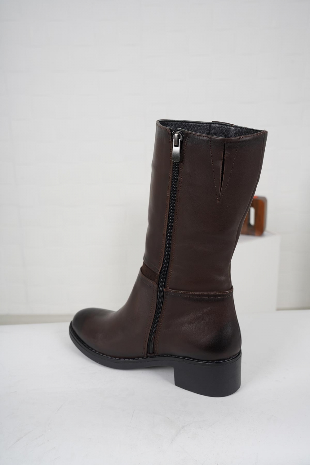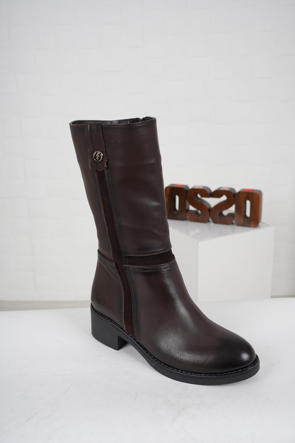 Hakiki Deri Kahve-Kahve Süet Kadın Düz Çizme 212136304