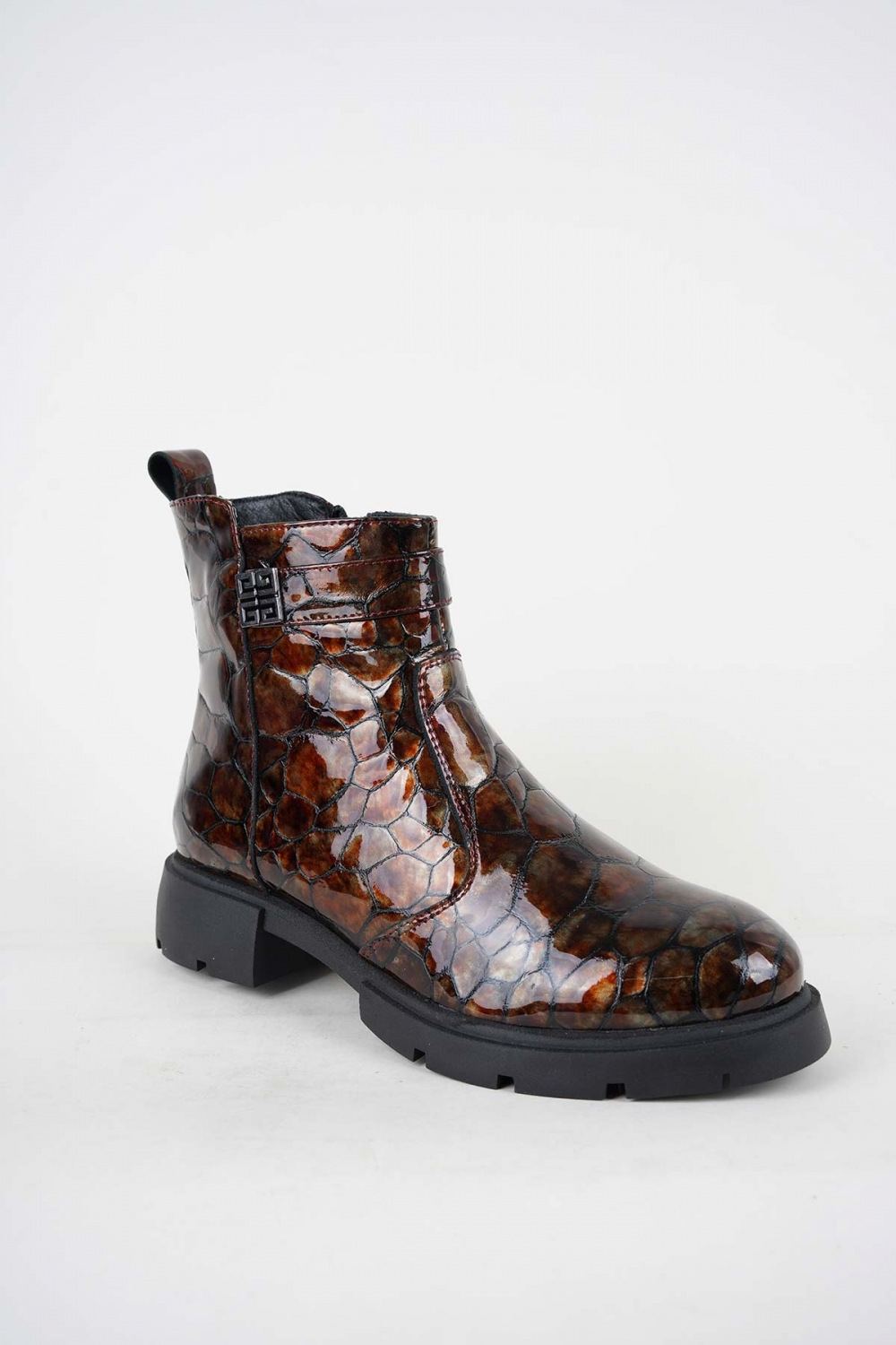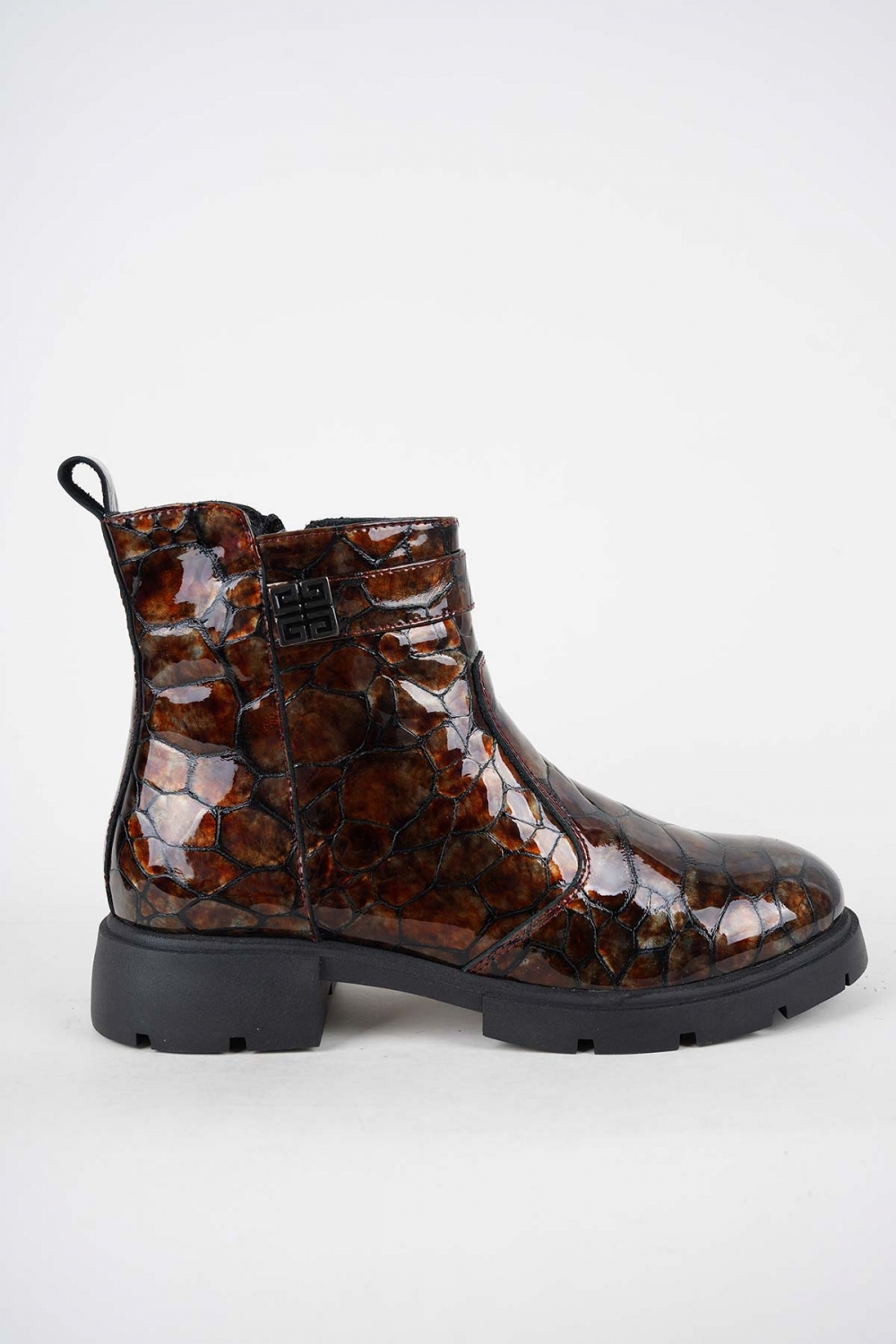 Hakiki Deri Kahve Mermer Rugan Kadın Casual Bot 252189201