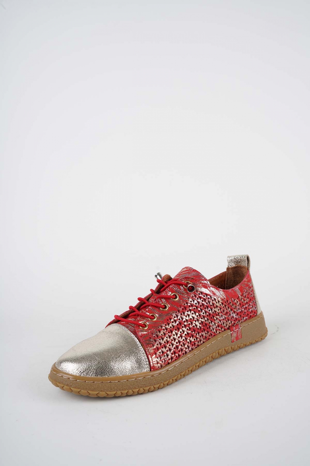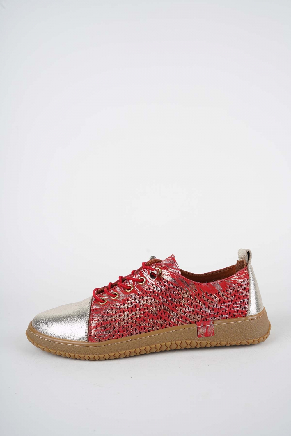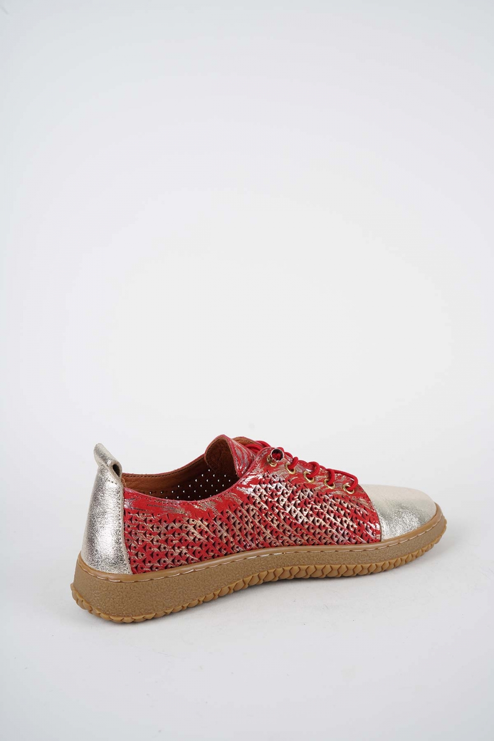 Hakiki Deri Kırmızı Baskılı-Altın Kadın Casual Ayakkabı 261186104