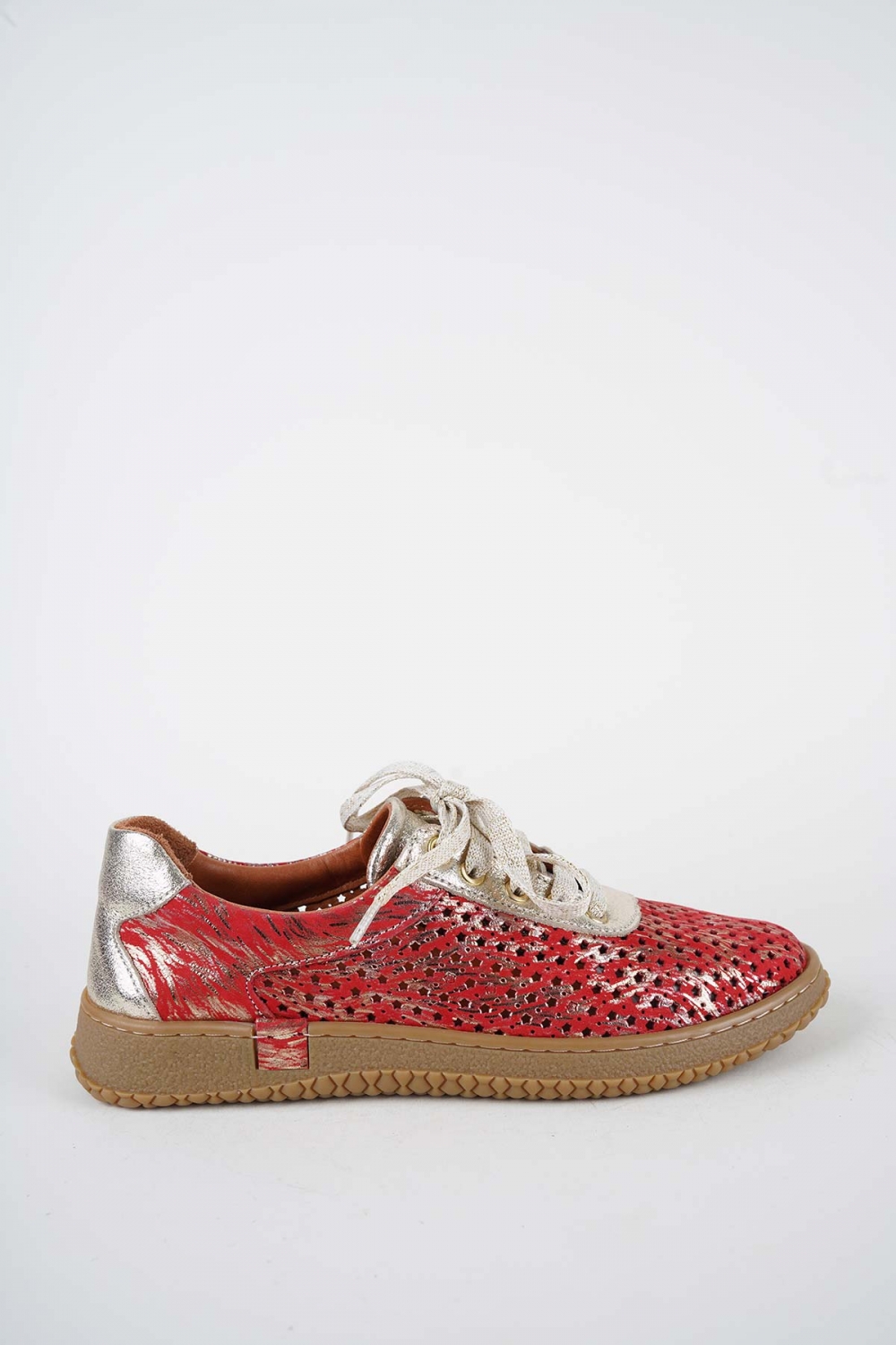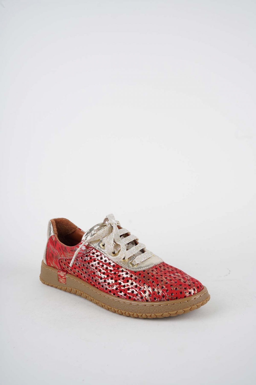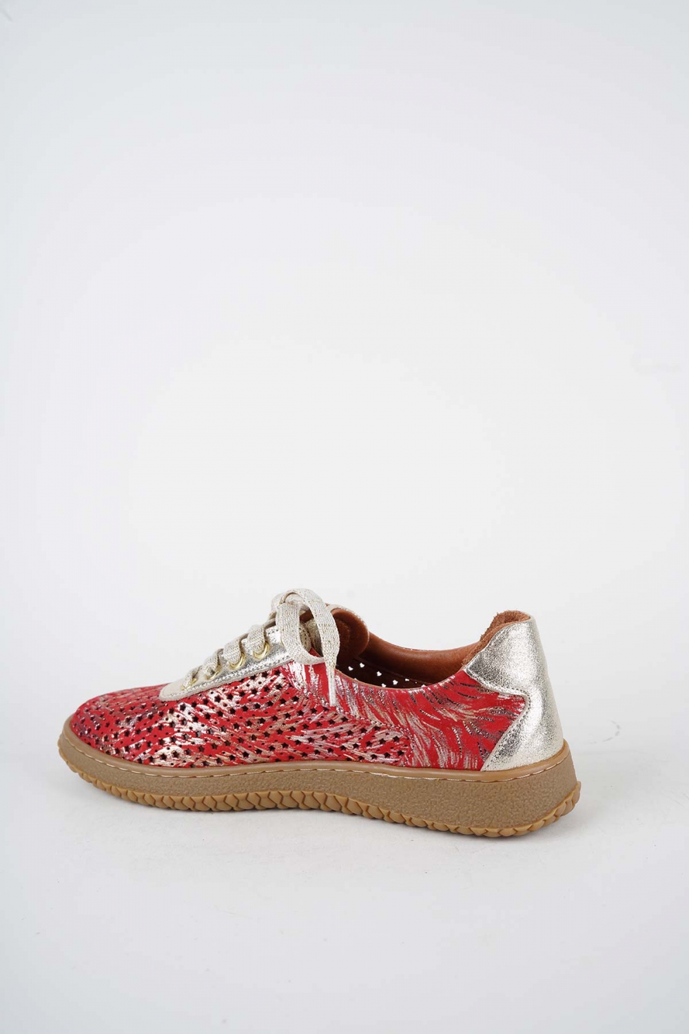 Hakiki Deri Kırmızı Baskılı-Altın Kadın Casual Ayakkabı 261186105