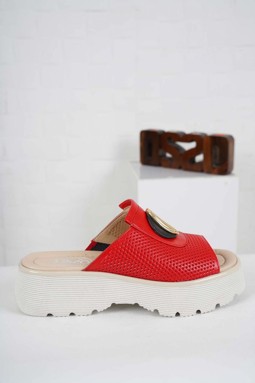 Hakiki Deri Kırmızı Kadın Casual Terlik 241134601
