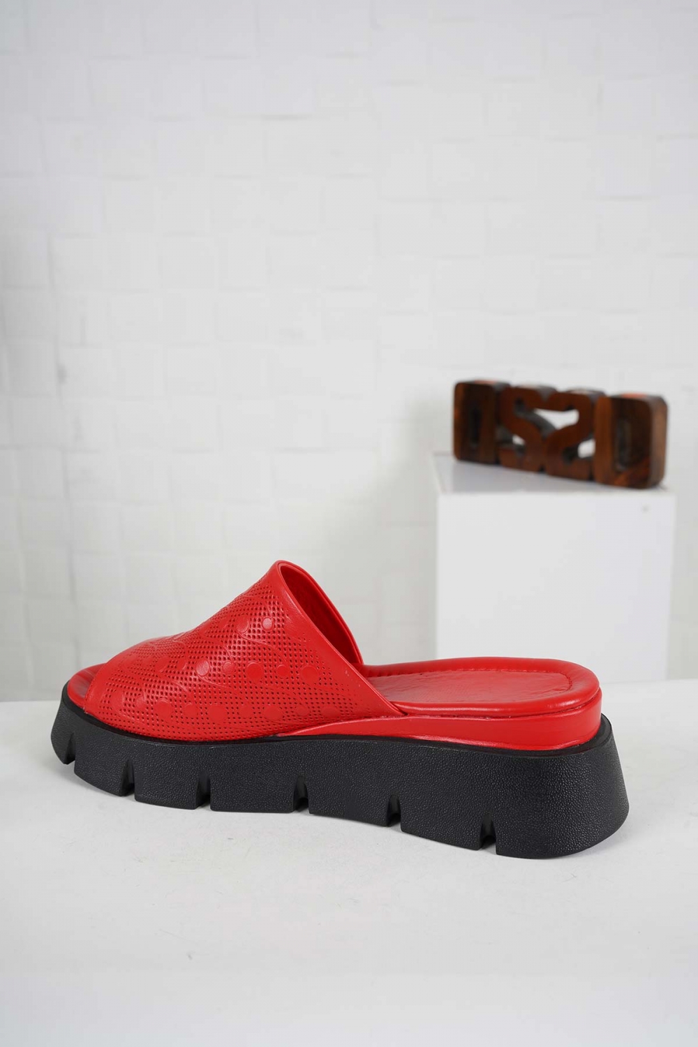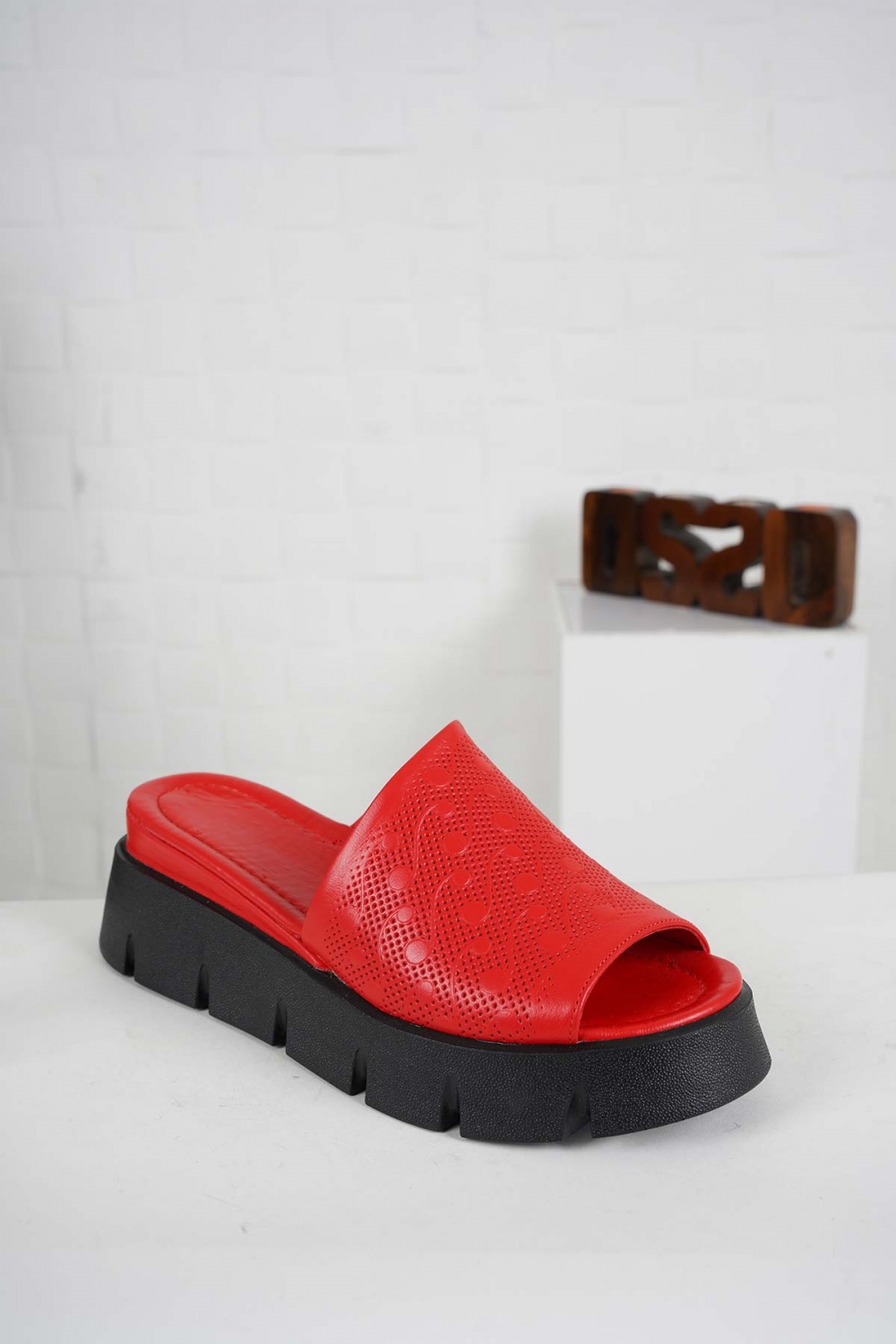 Hakiki Deri Kırmızı Kadın Dolgu Topuk Terlik 241229610