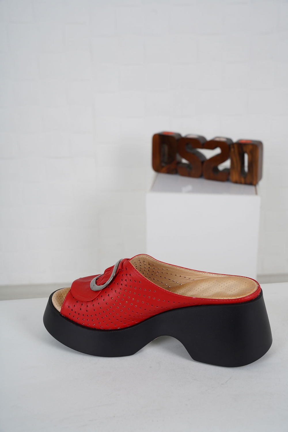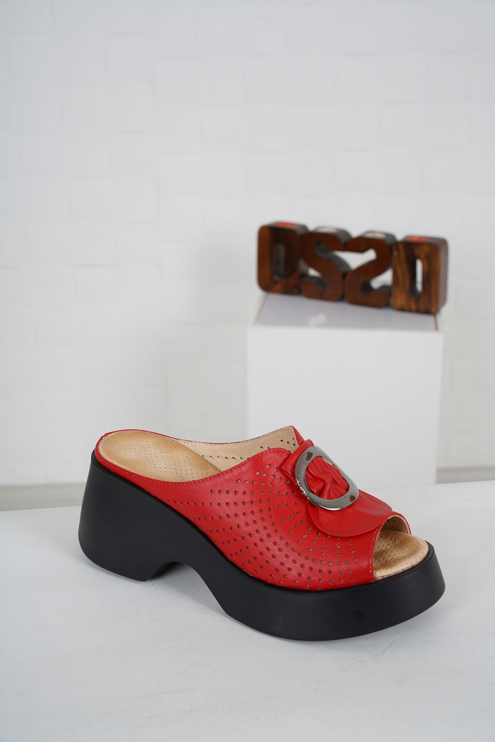 Hakiki Deri Kırmızı Kadın Dolgu Topuklu Terlik 231229604