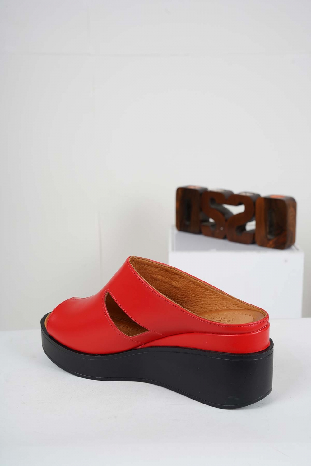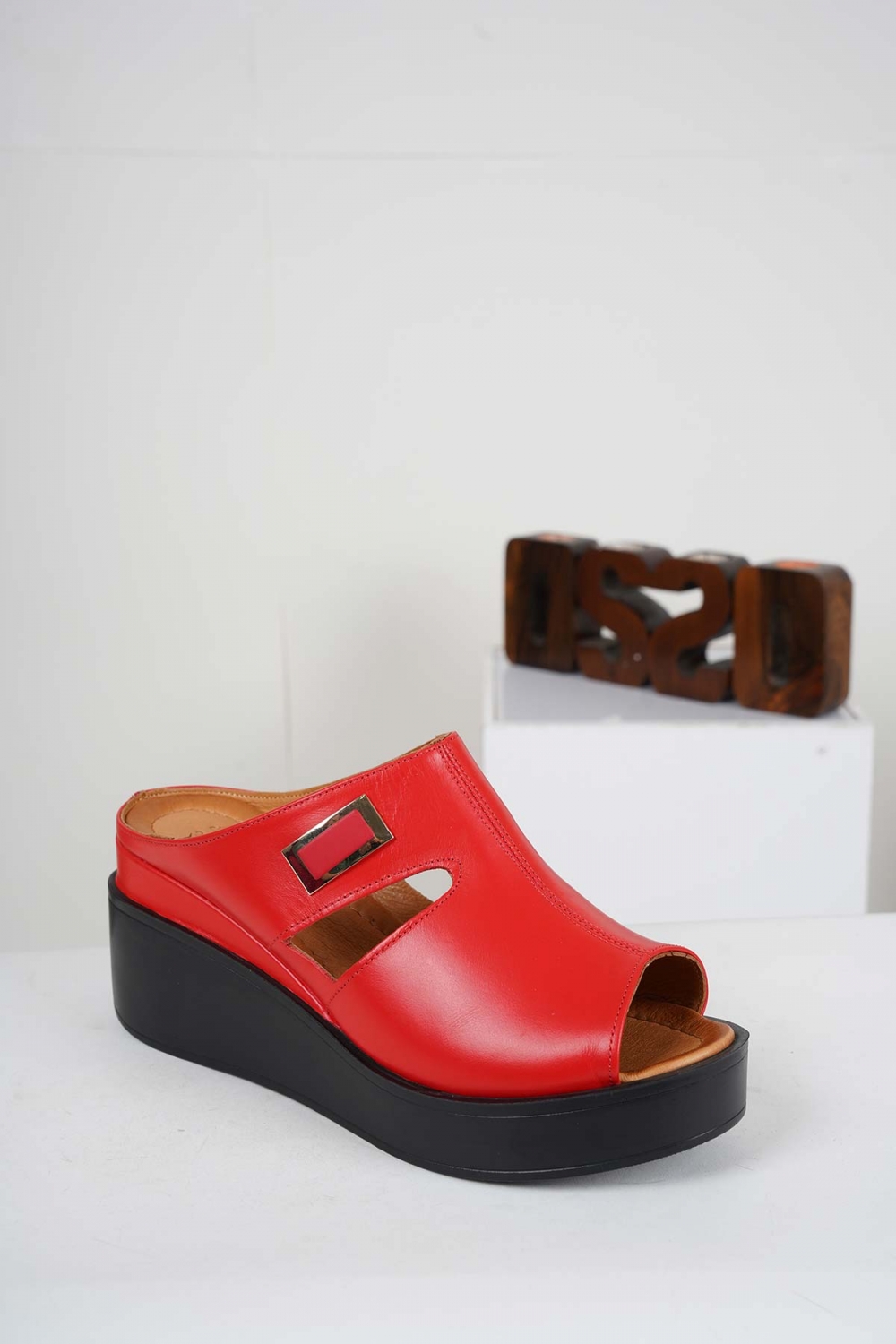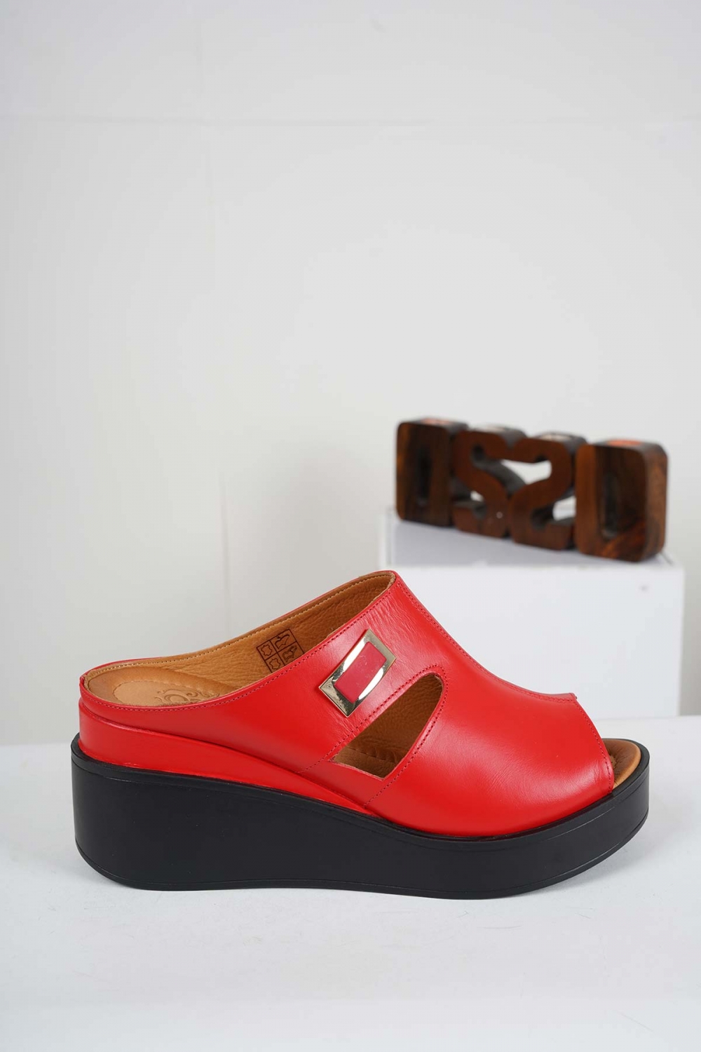 Hakiki Deri Kırmızı Kadın Dolgu Topuklu Terlik 241229613