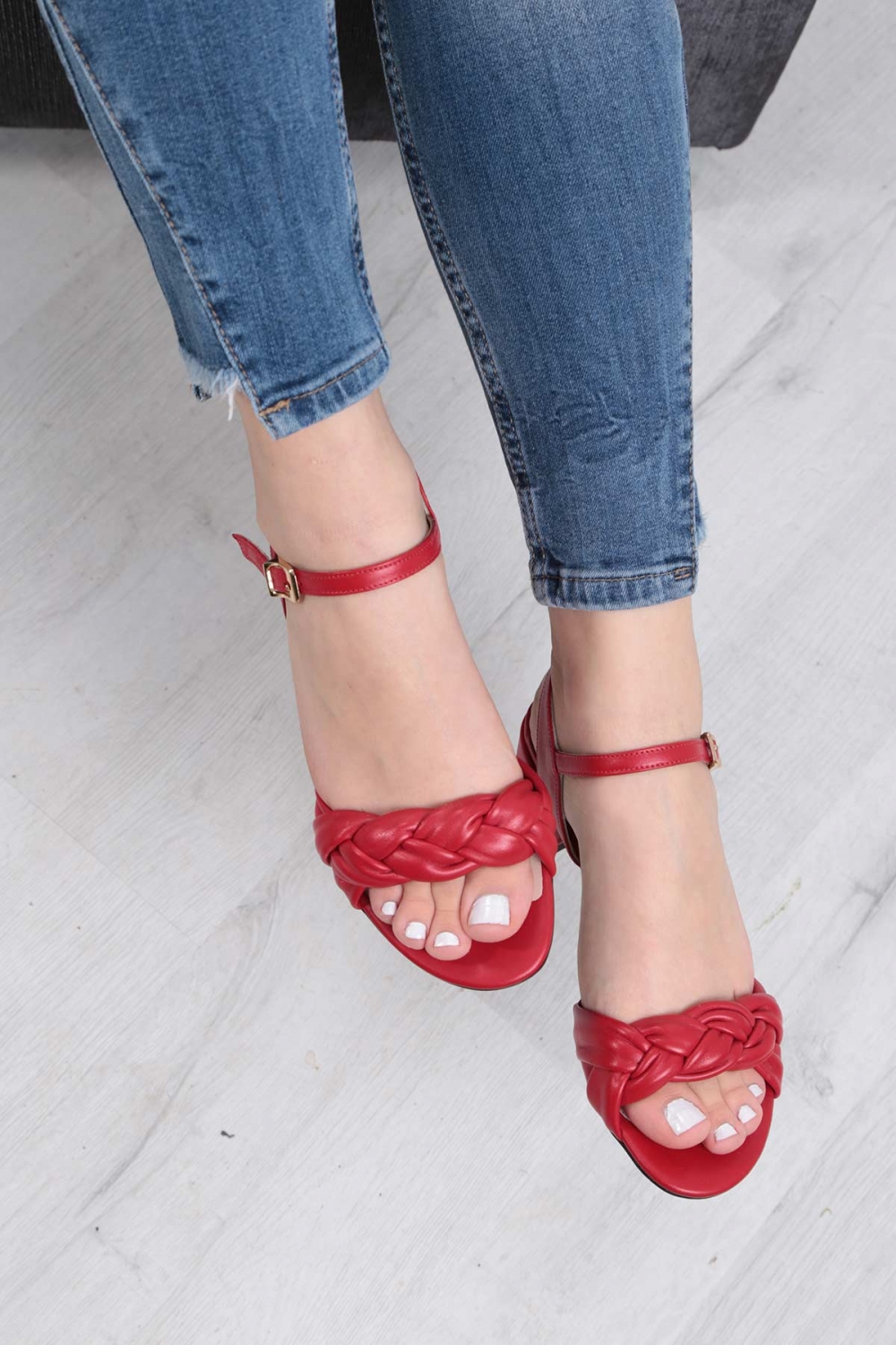 Hakiki Deri Kırmızı Kadın Düz Sandalet 211127523