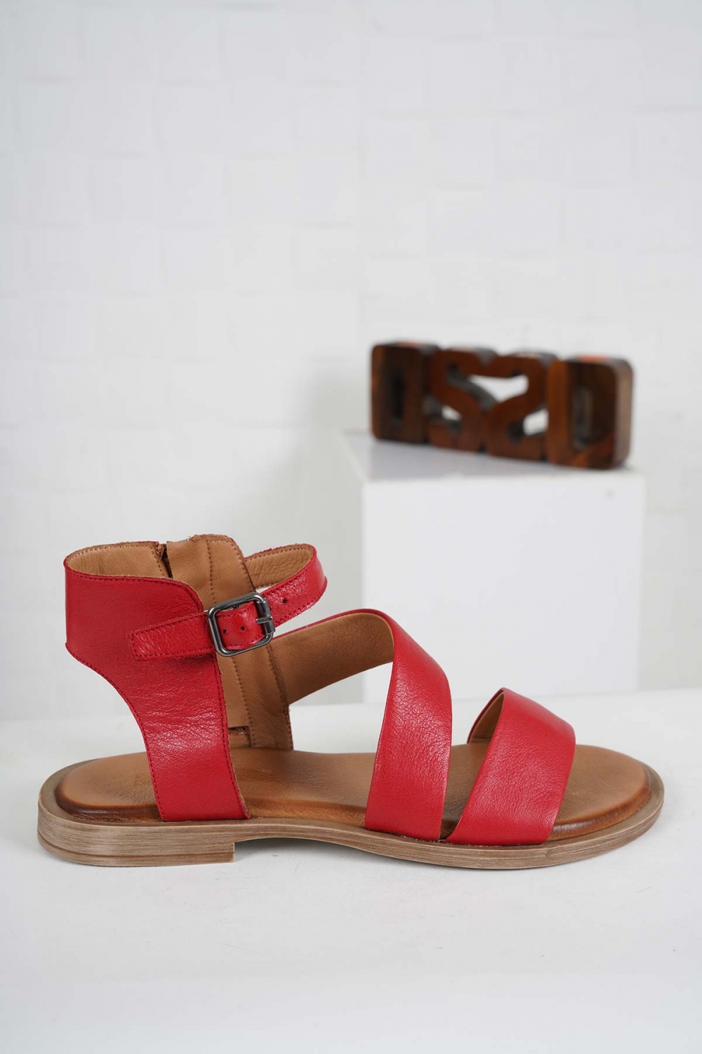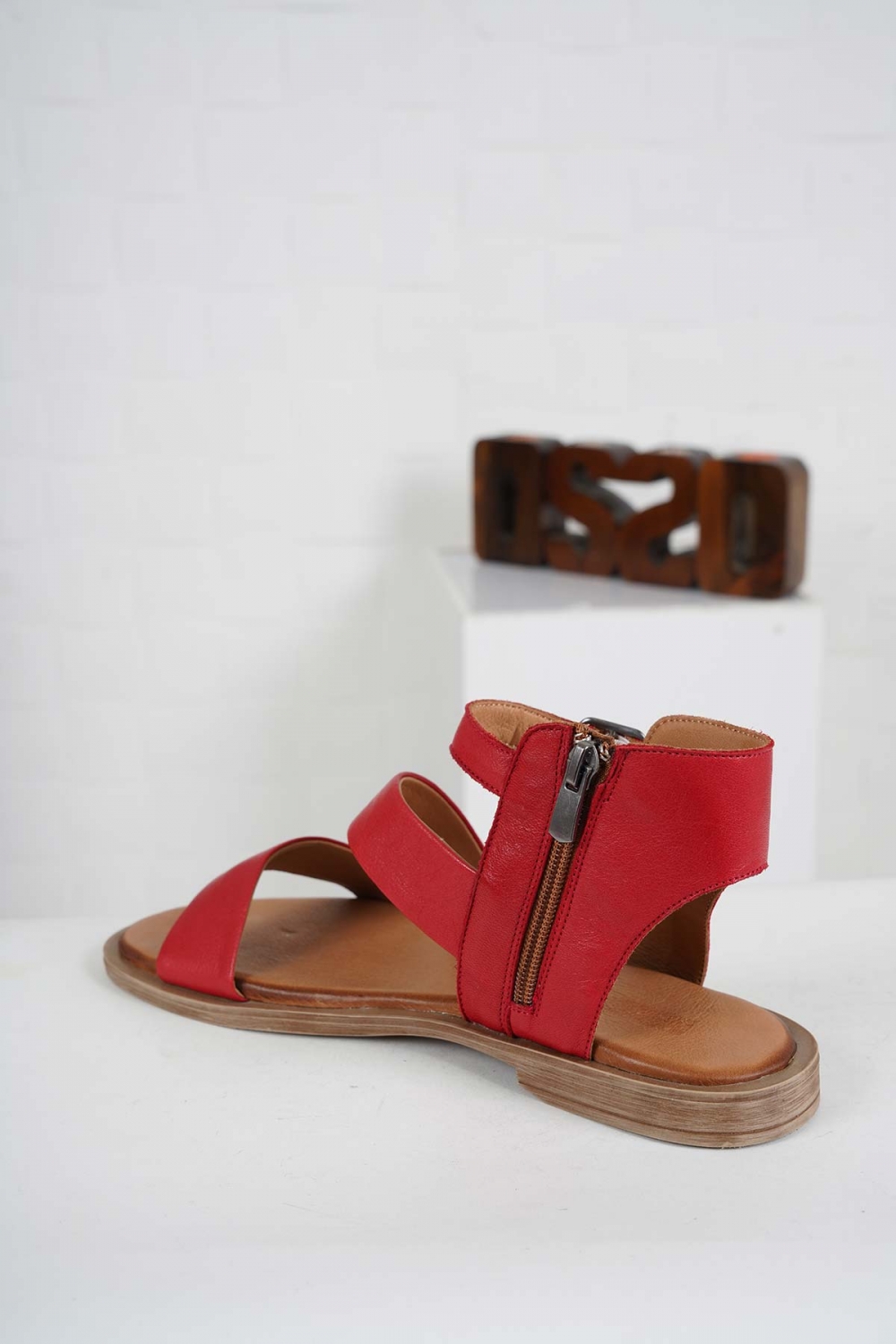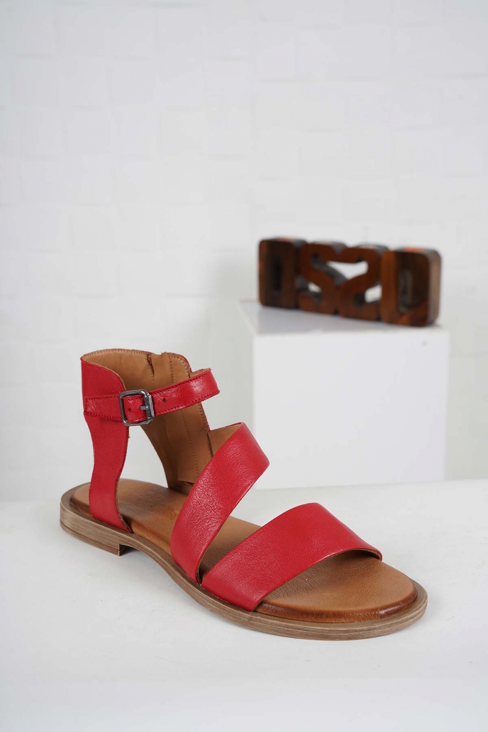 Hakiki Deri Kırmızı Kadın Düz Sandalet 241126529