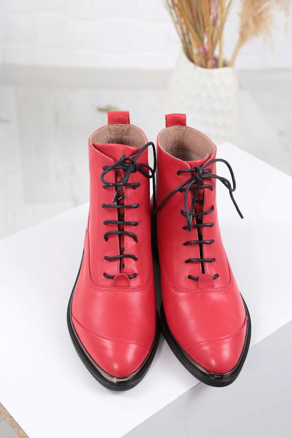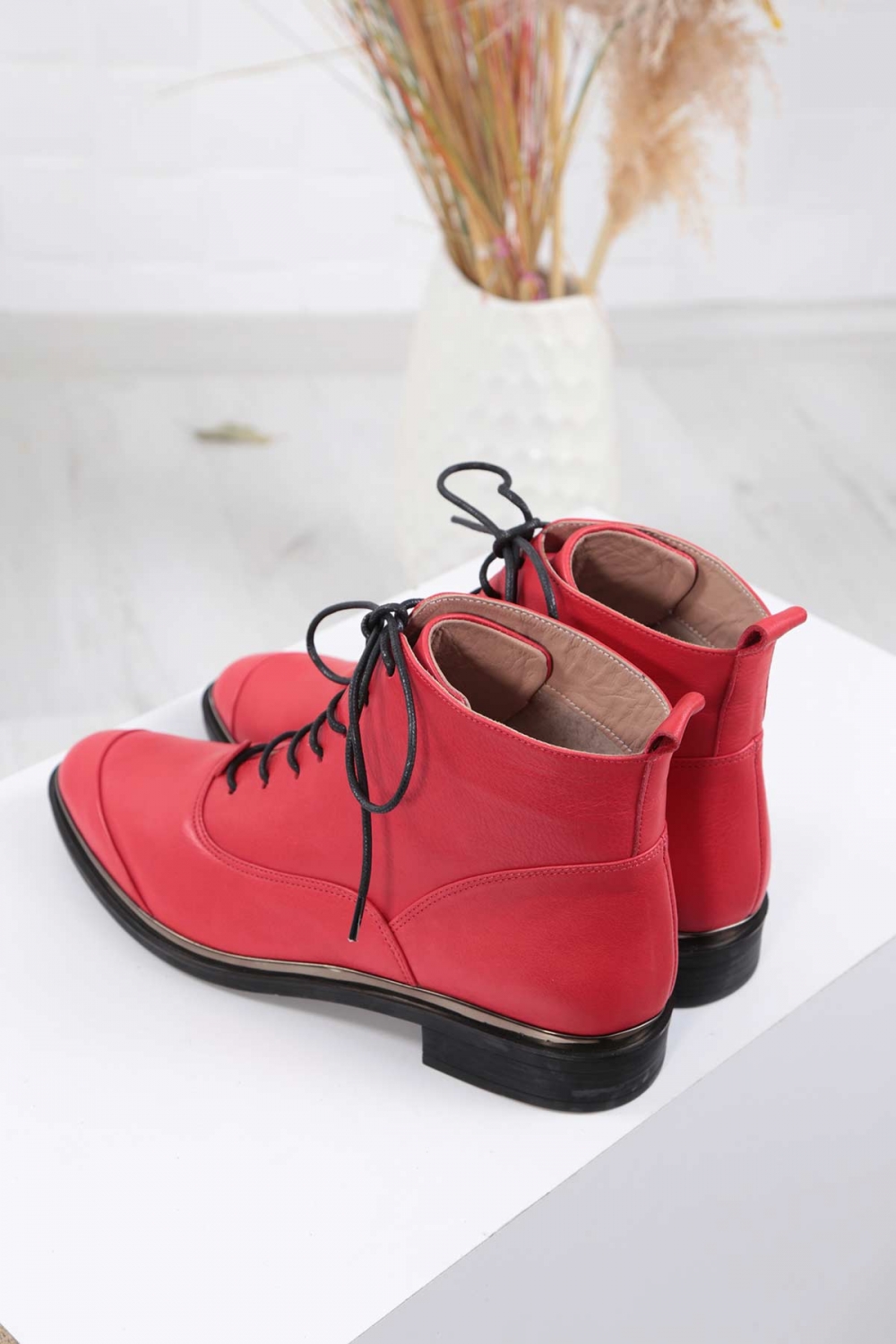 Hakiki Deri Kırmızı Kadın Kısa Bot 202110207