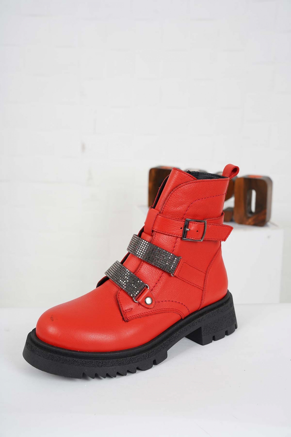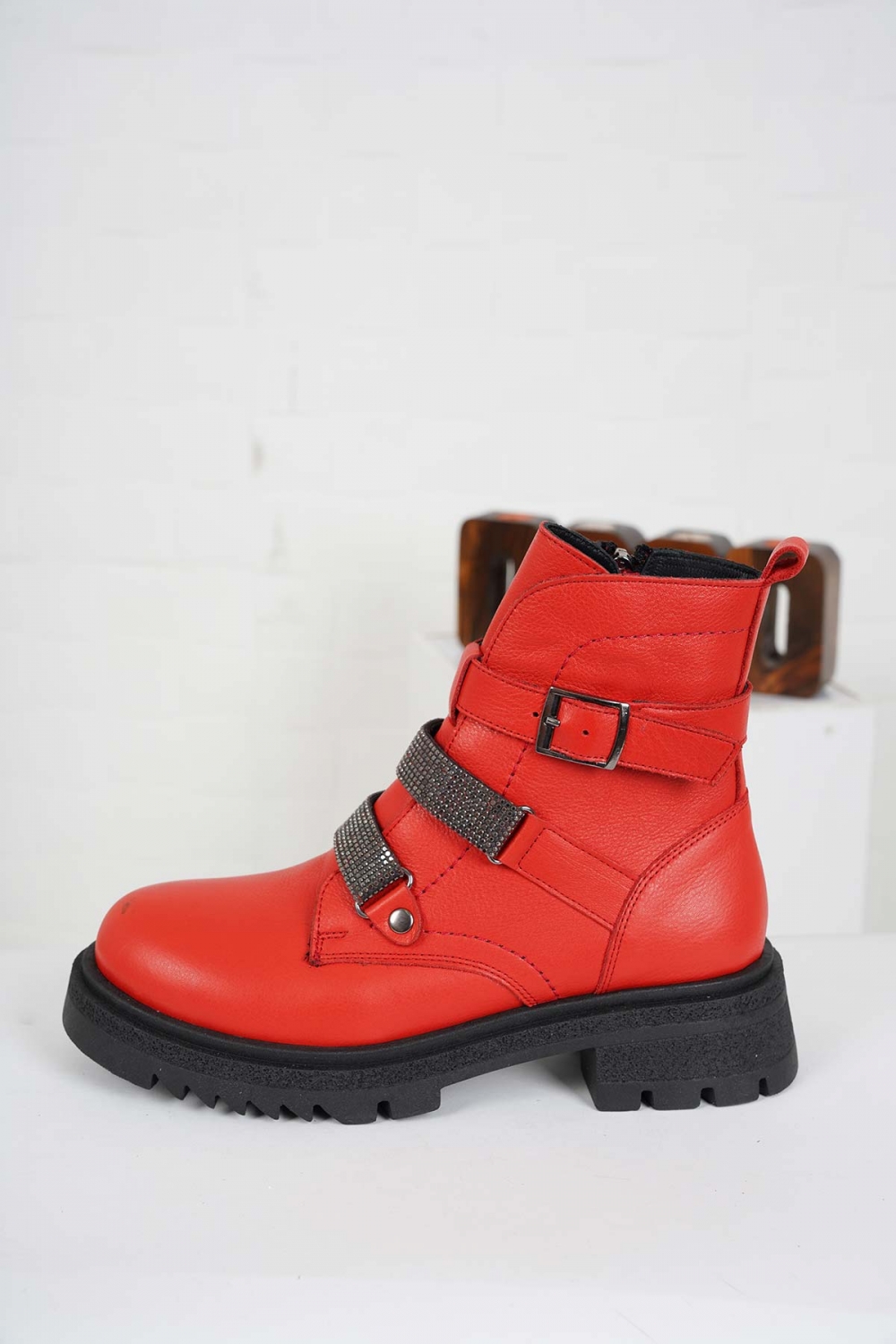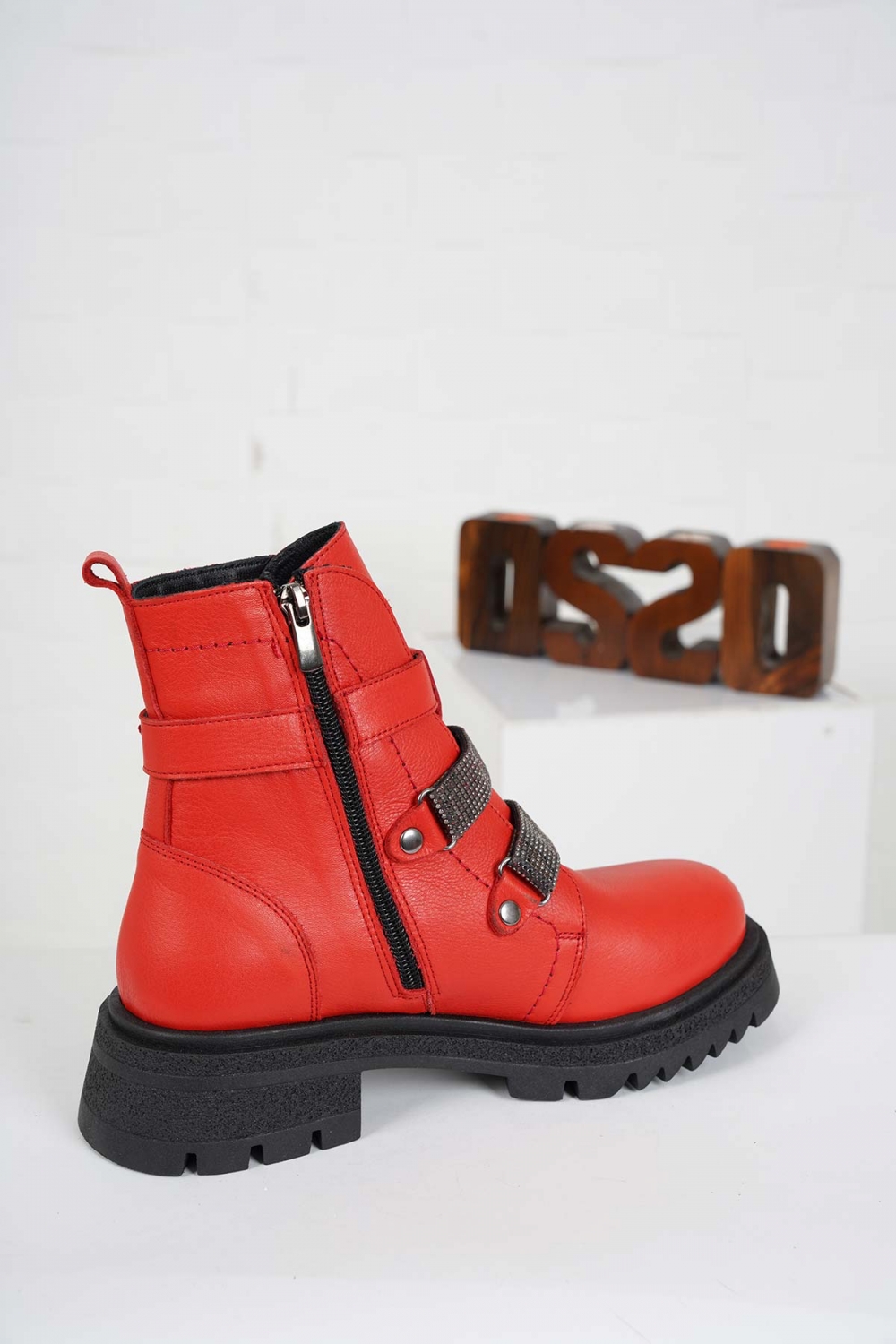 Hakiki Deri Kırmızı Kadın Kısa Bot 232177202