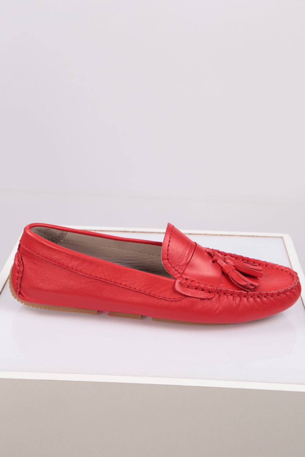 Hakiki Deri Kırmızı Kadın Makosen Ayakkabı 221209108