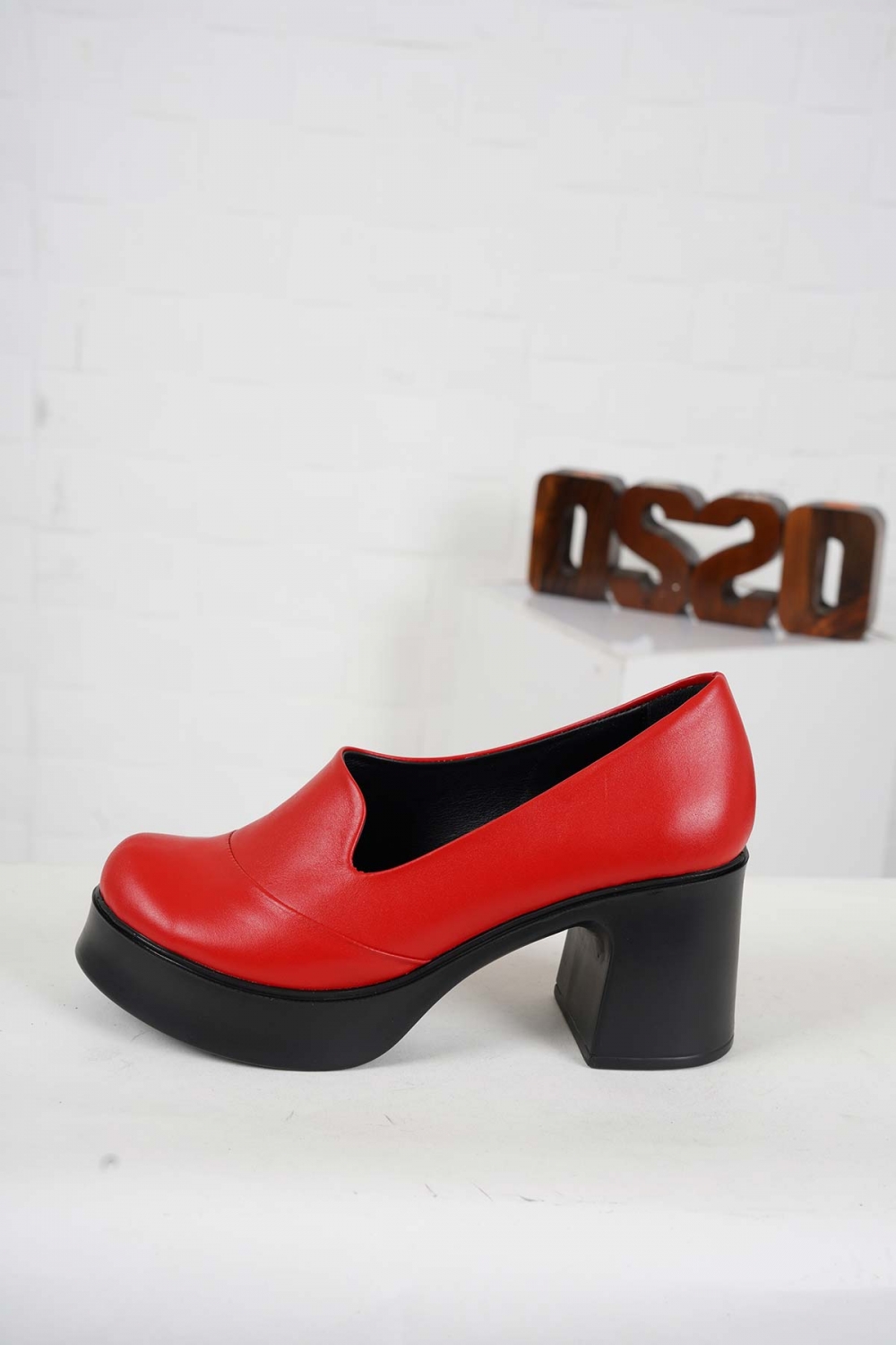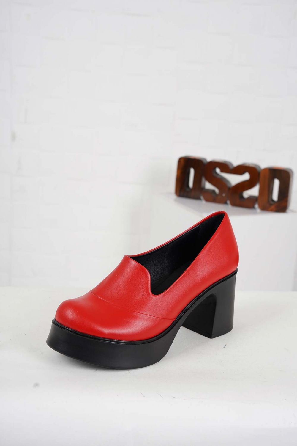 Hakiki Deri Kırmızı Kadın Topuklu Ayakkabı 242229101