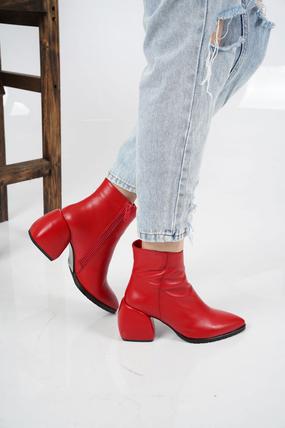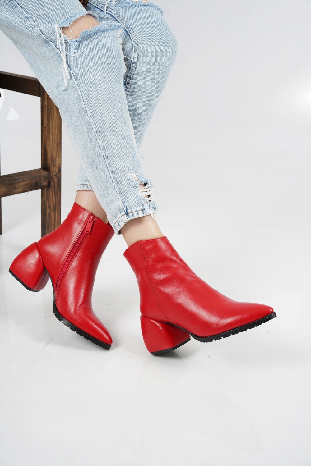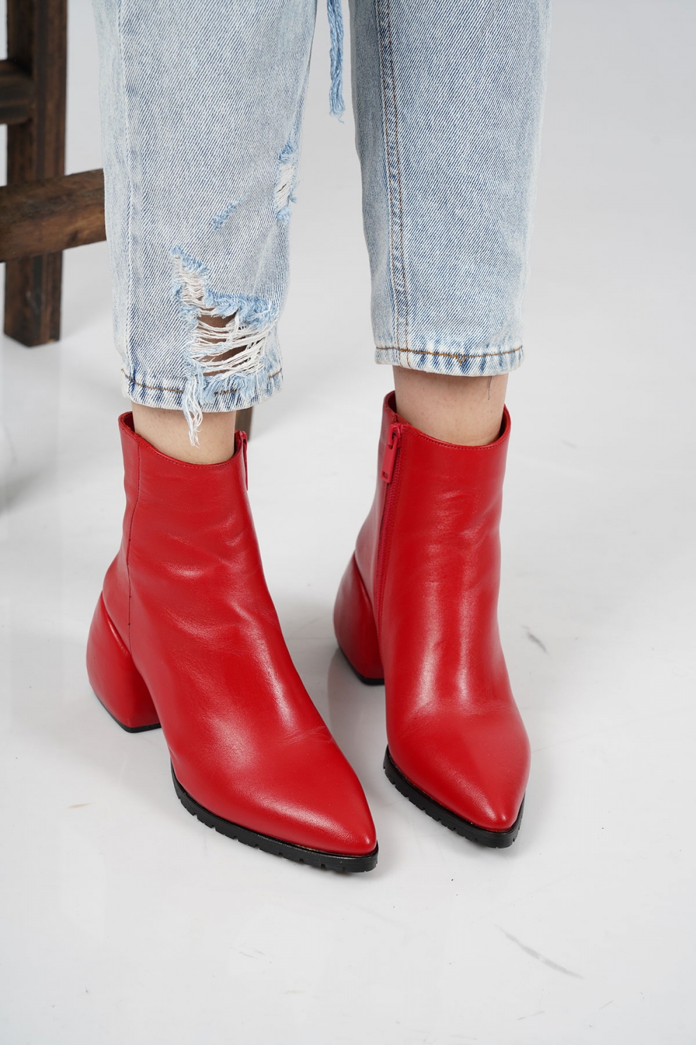 Hakiki Deri Kırmızı Kadın Topuklu Bot 222127204