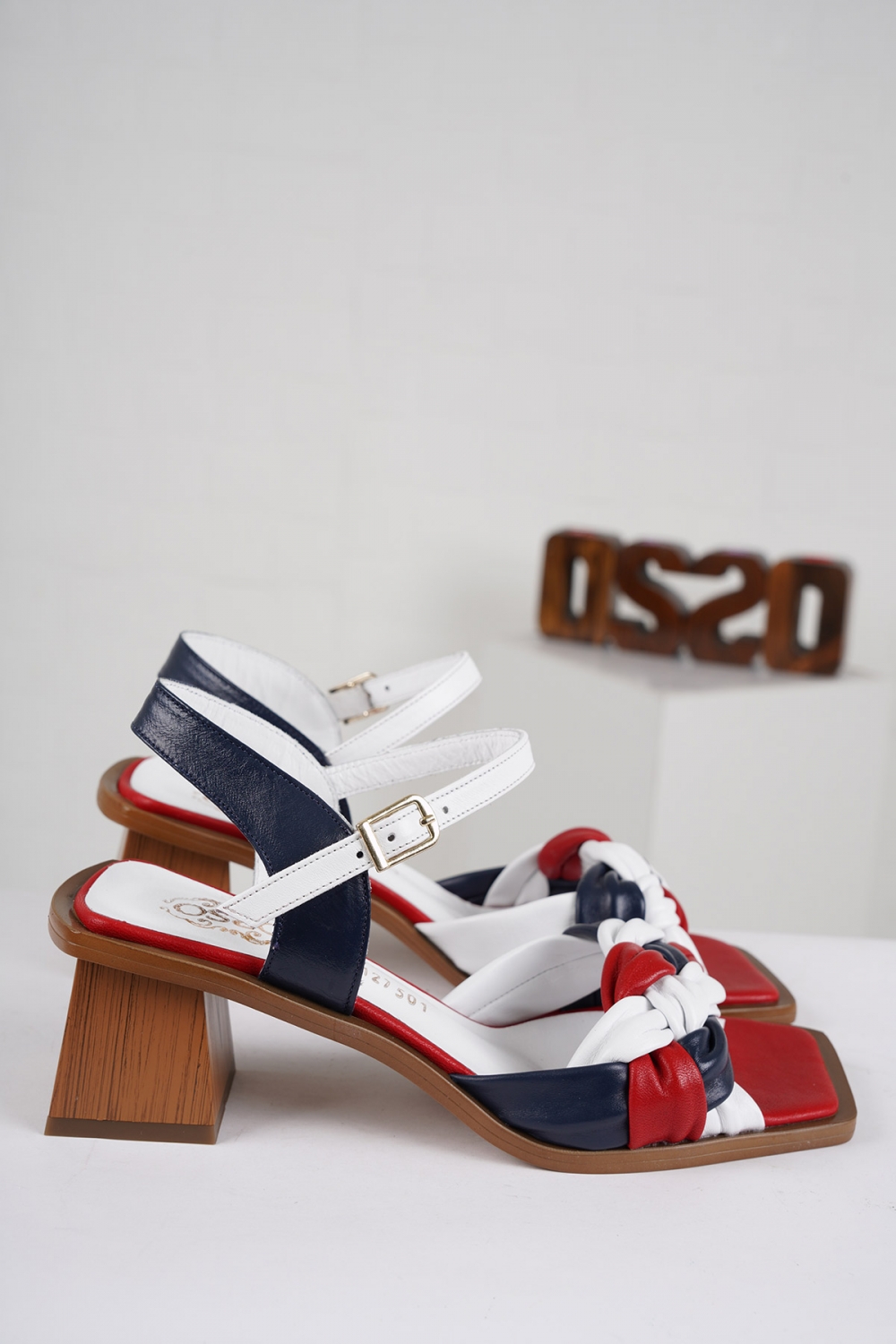 Hakiki Deri Kırmızı-Laci-Beyaz Kadın Topuklu Sandalet 221127501