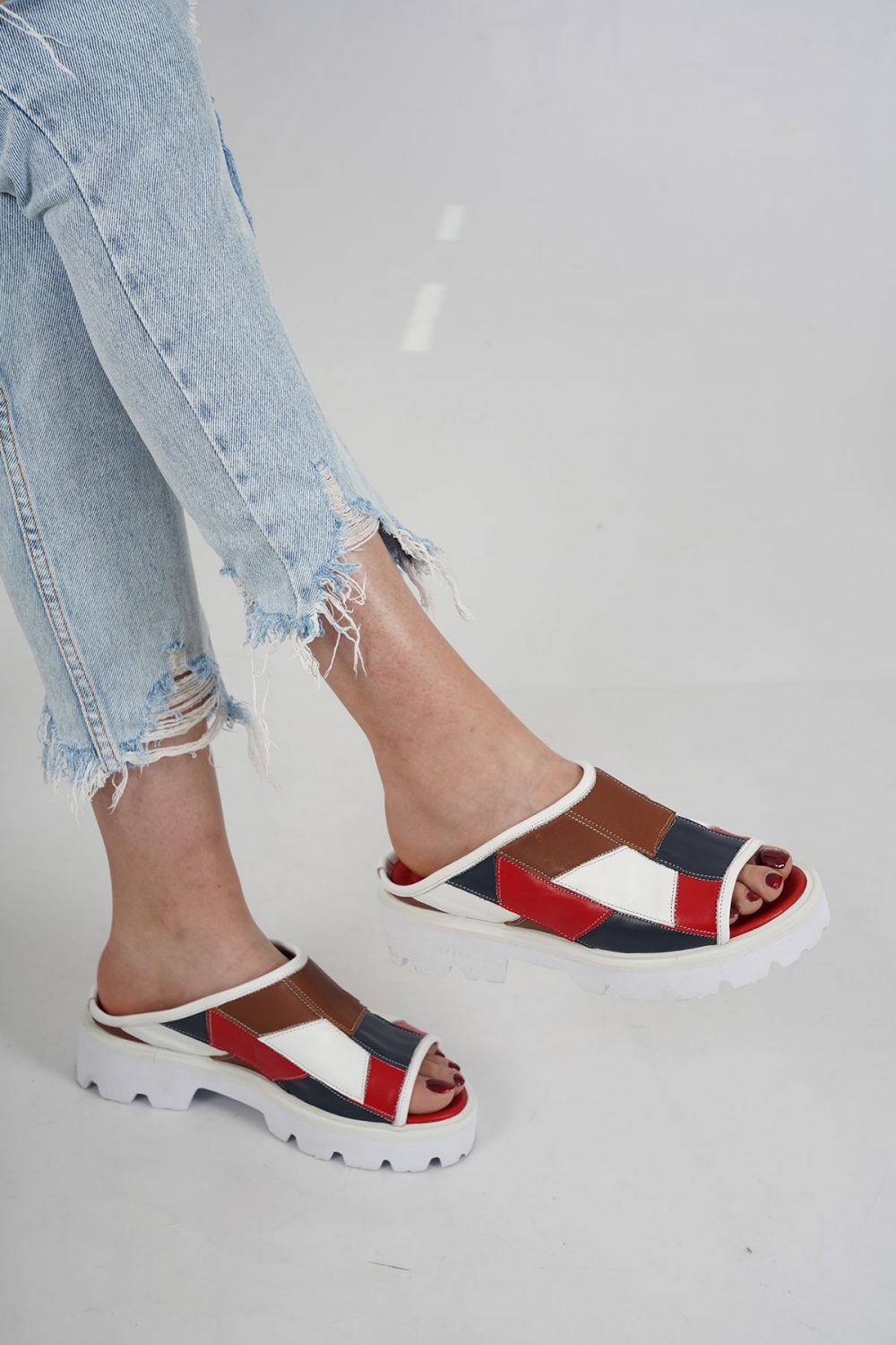 Hakiki Deri Kırmızı-Laci-Beyaz-Taba Kadın Casual Terlik 231127606