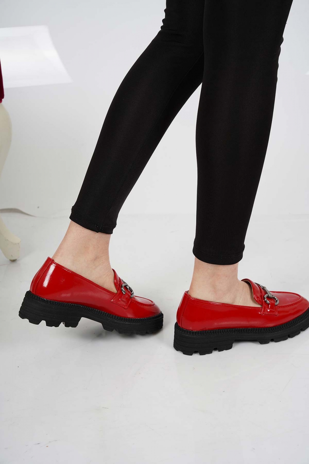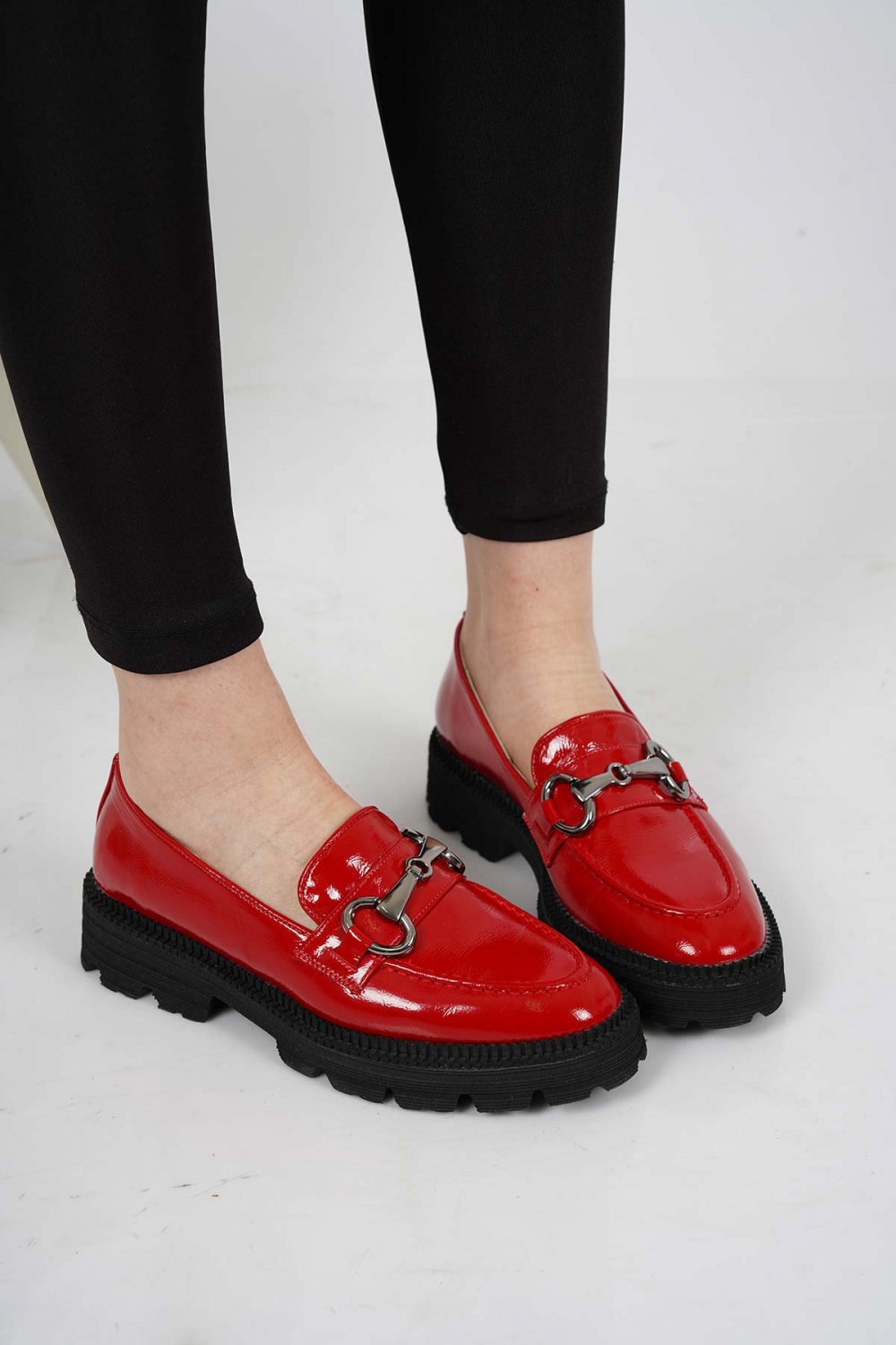 Hakiki Deri Kırmızı Rugan Kadın Casual Ayakkabı 231127101