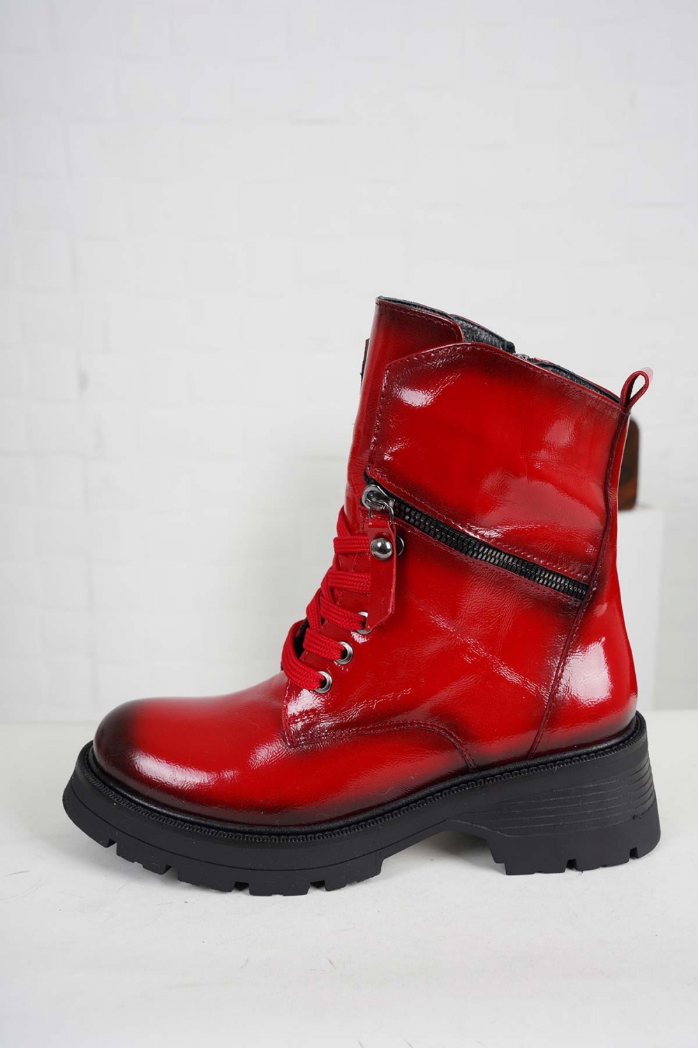Hakiki Deri Kırmızı Rugan Kadın Postal Bot 242136204