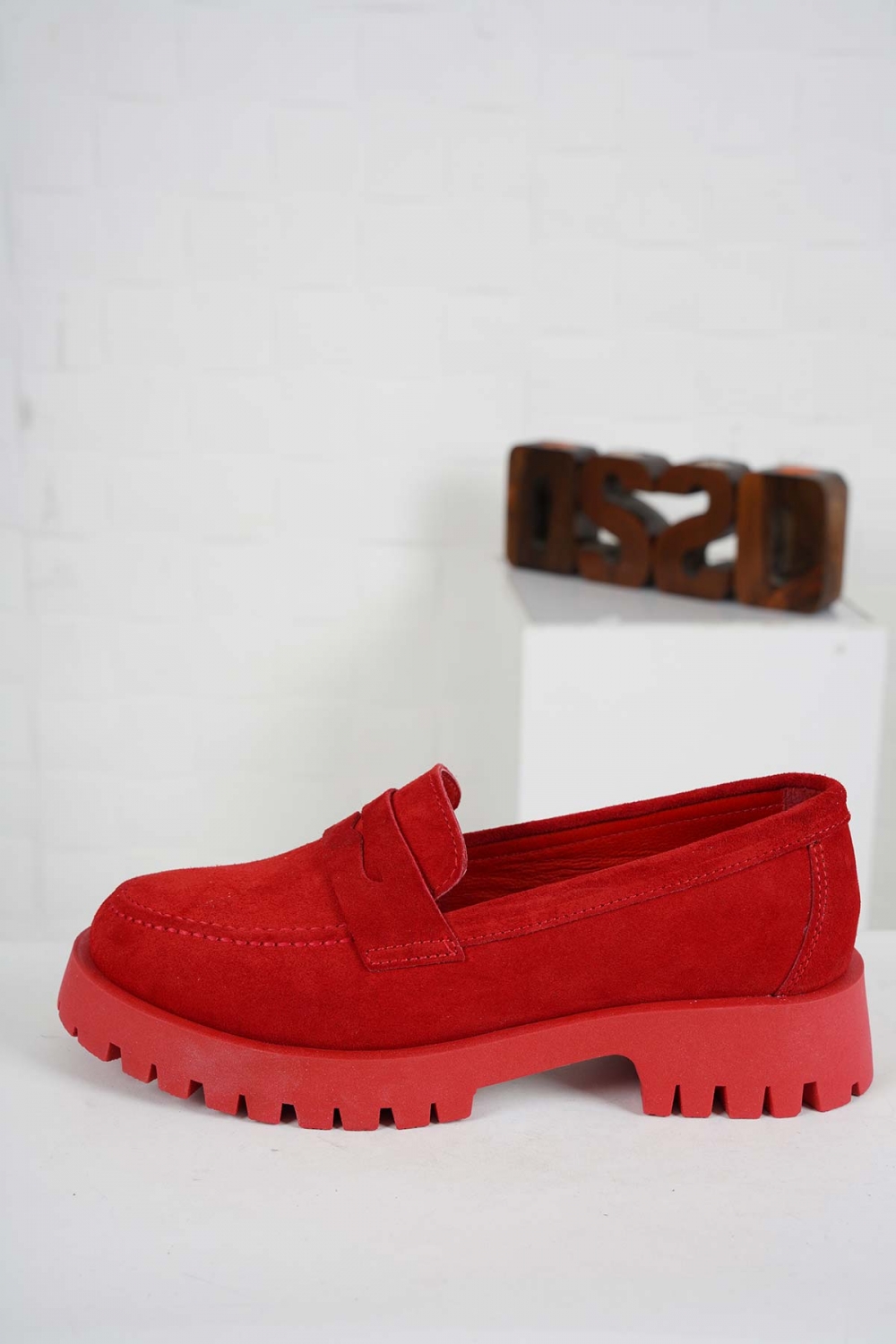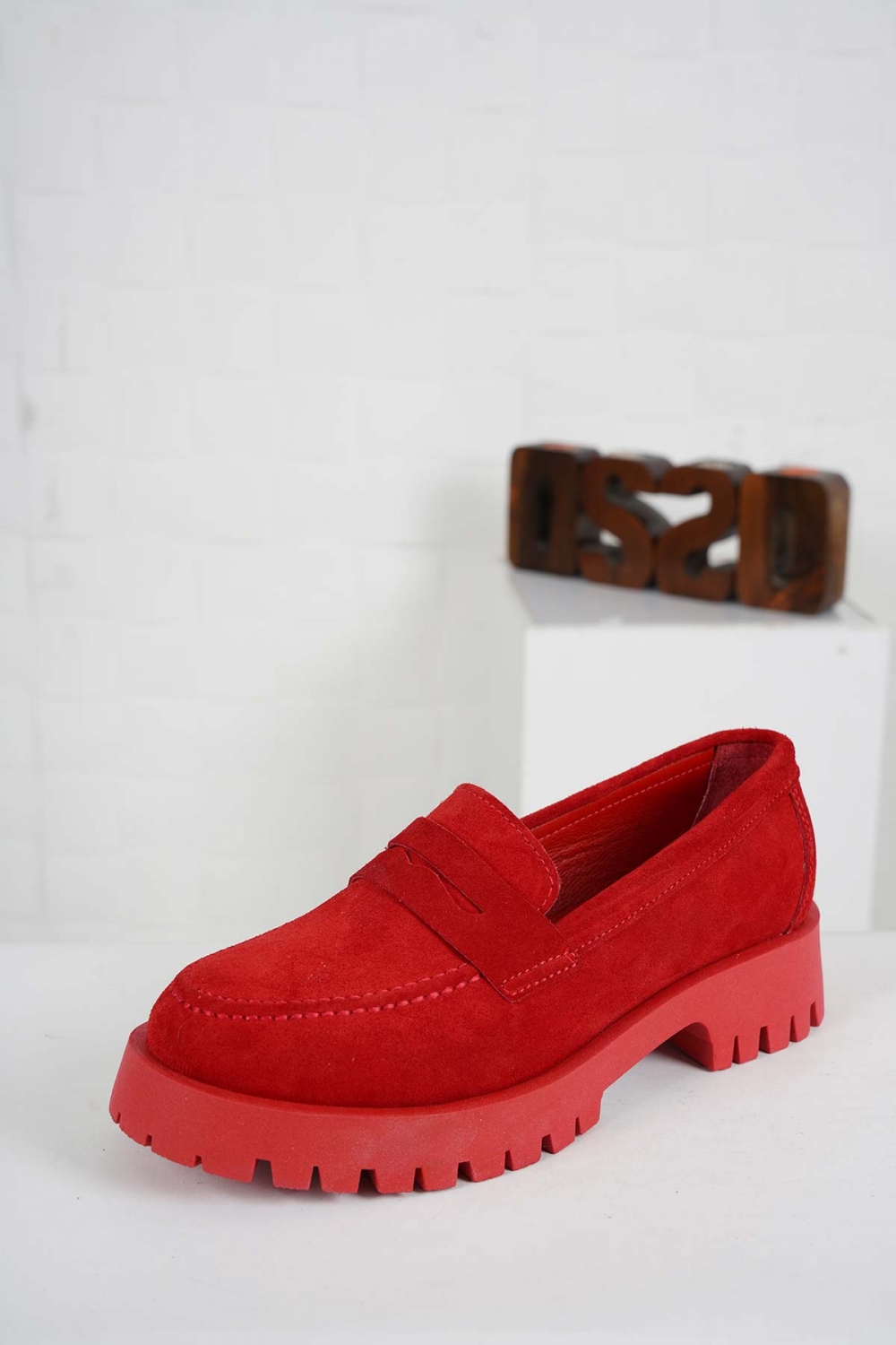 Hakiki Deri Kırmızı Süet Kadın Casual Ayakkabı 231108119