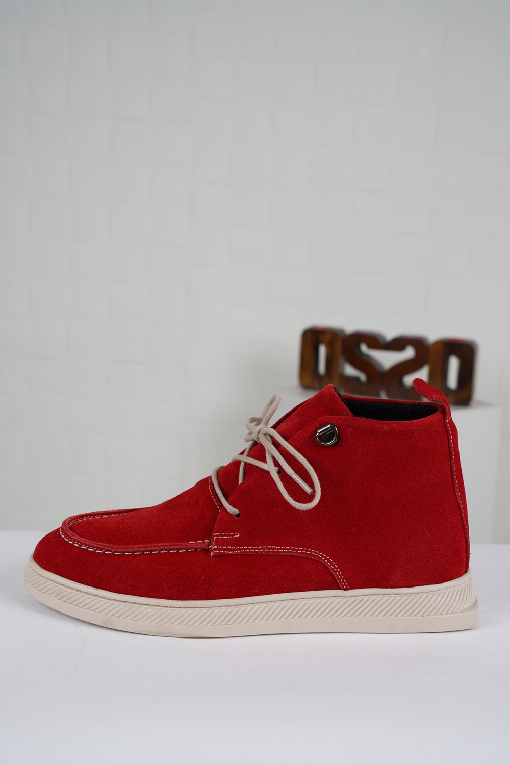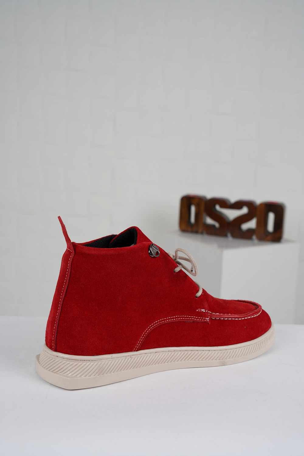 Hakiki Deri Kırmızı Süet Kadın Düz Bot 222220201