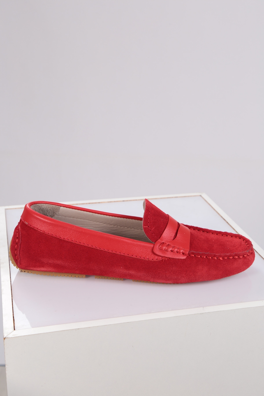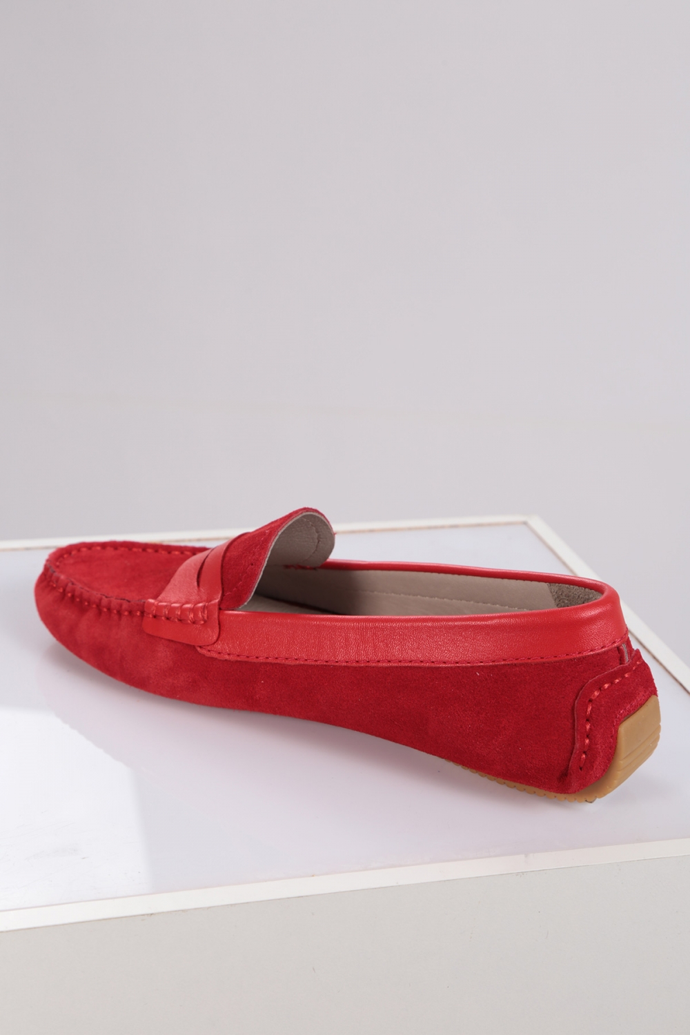 Hakiki Deri Kırmızı Süet-Kırmızı Kadın Makosen Ayakkabı 221209106