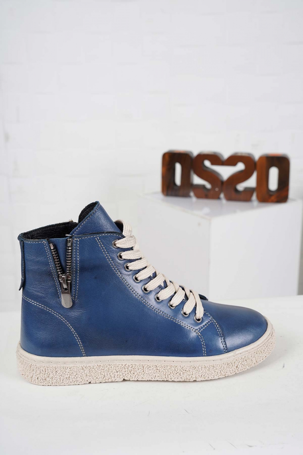 Hakiki Deri Kobalt Mavisi Kadın Casual Bot 242220207