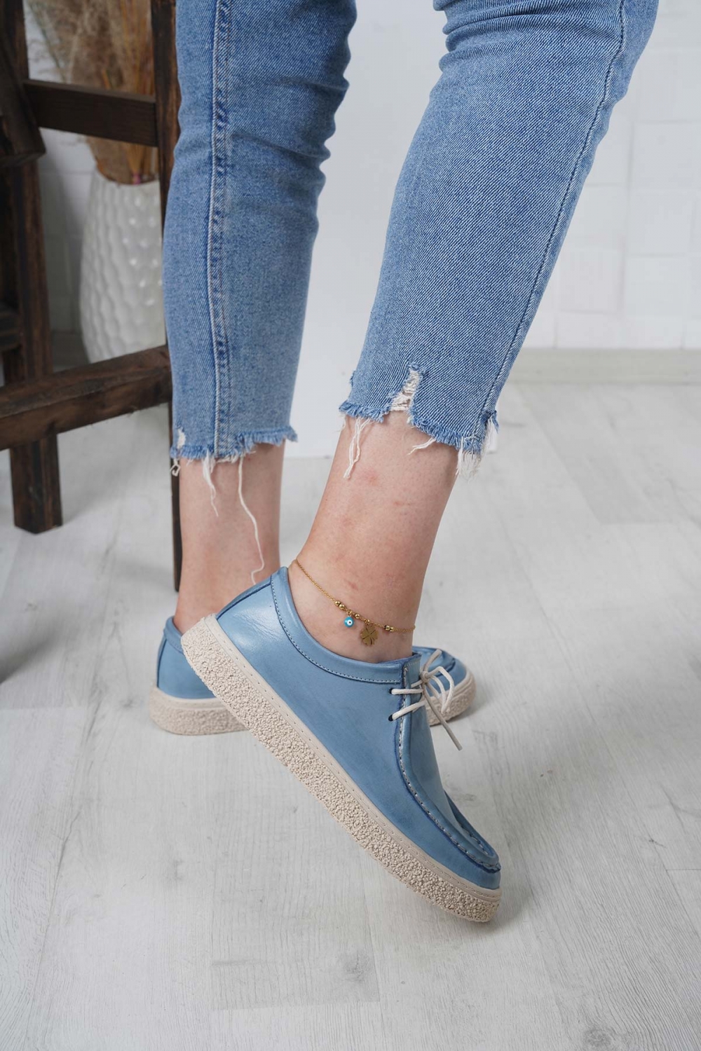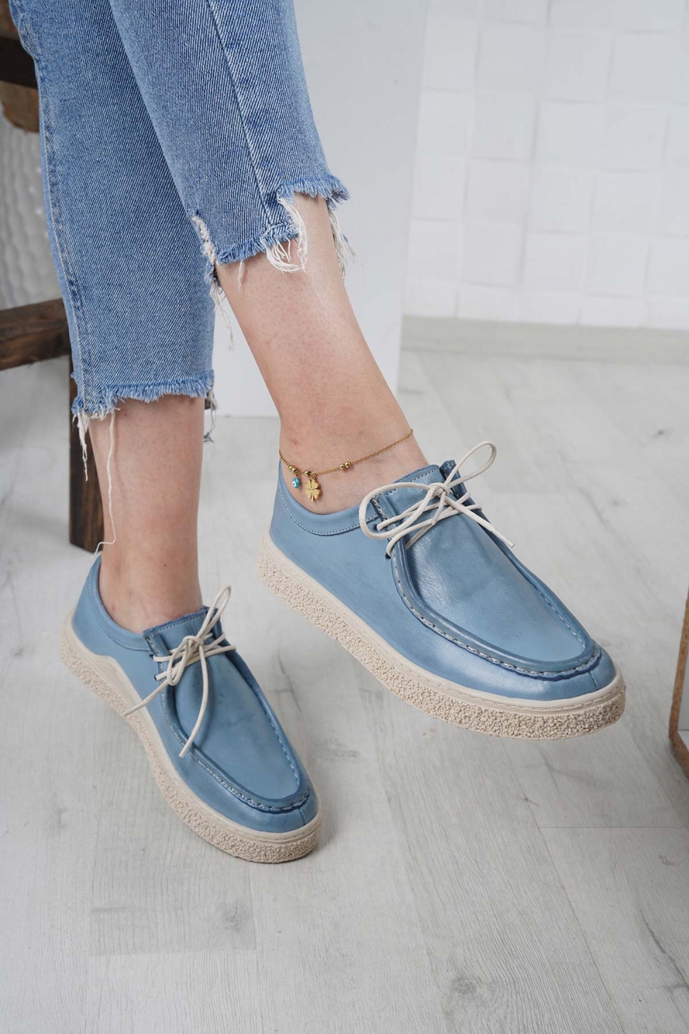 Hakiki Deri Kot Mavi Kadın Casual Ayakkabı 231220108