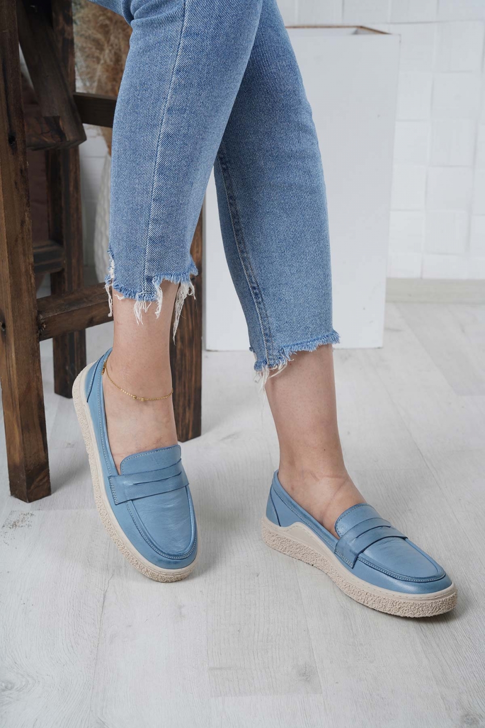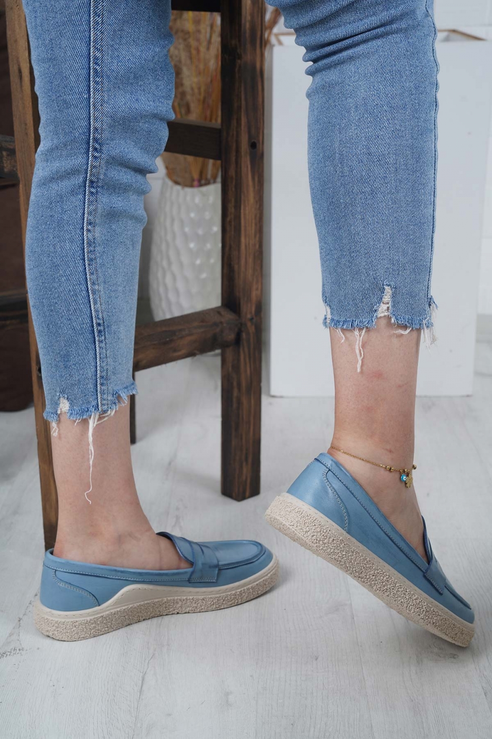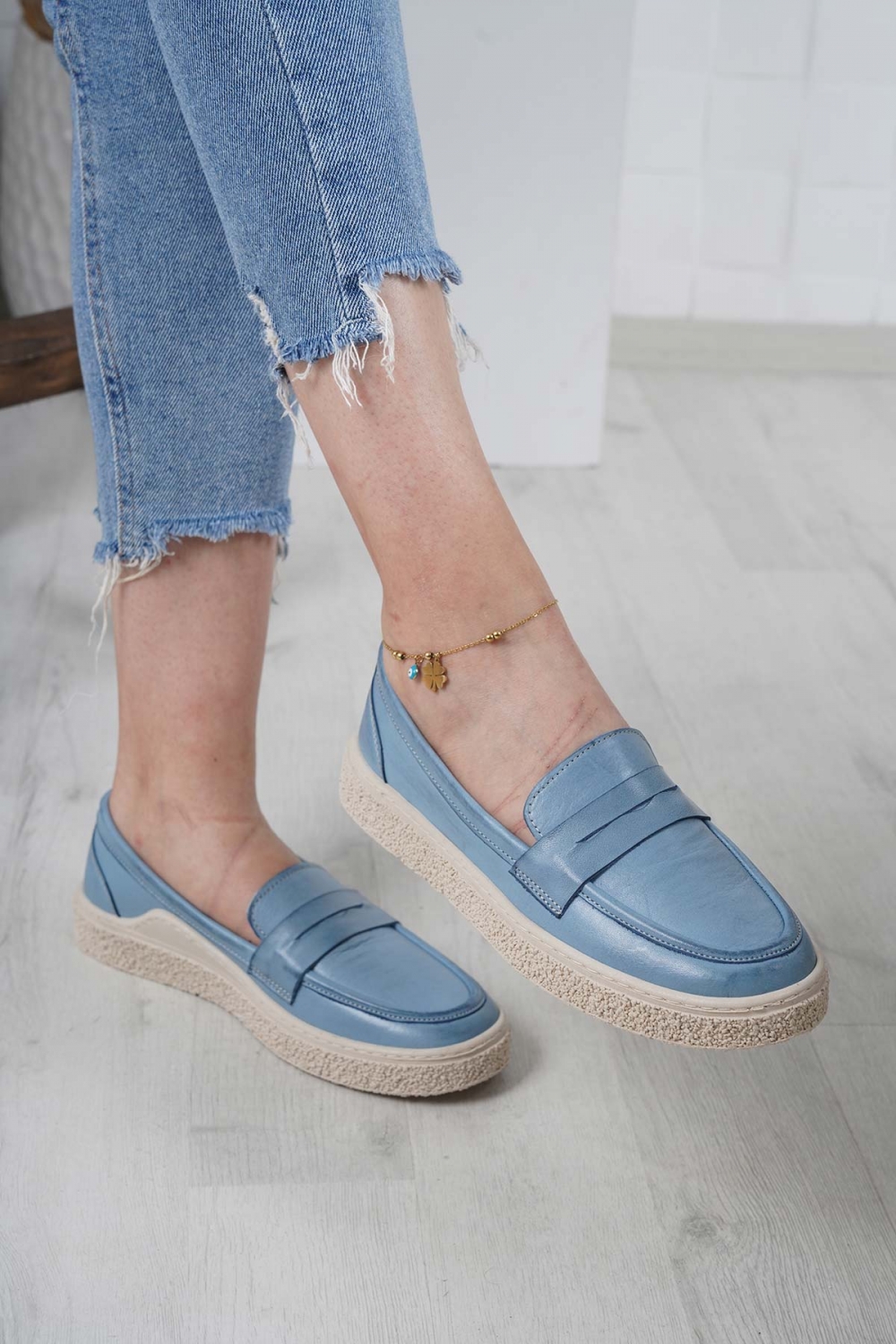 Hakiki Deri Kot Mavi Kadın Casual Ayakkabı 232220100