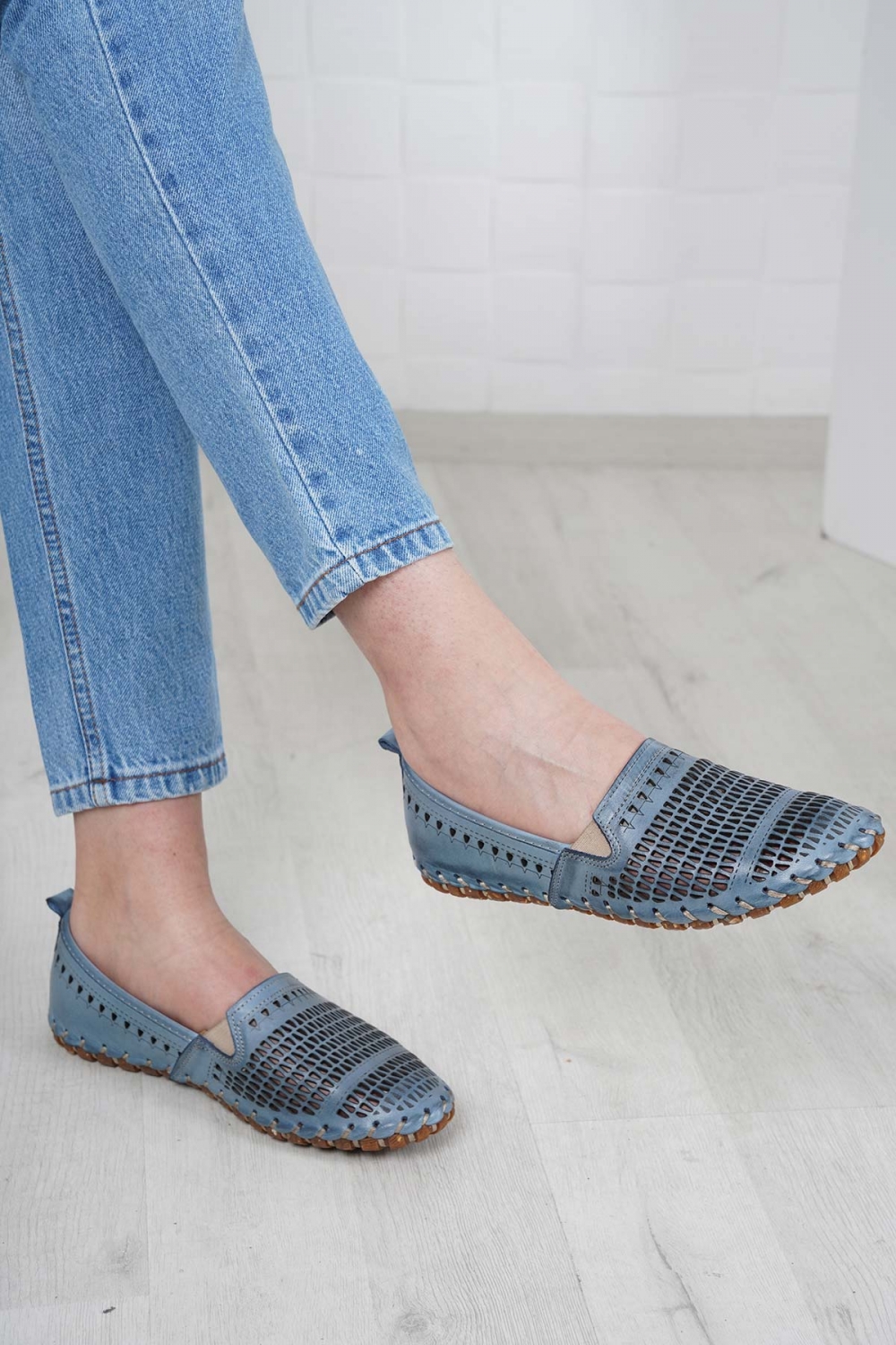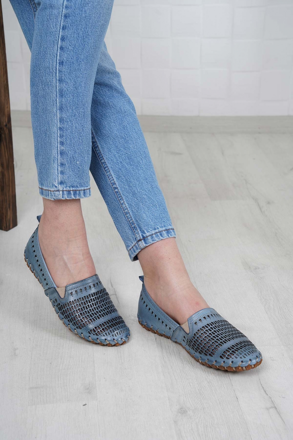 Hakiki Deri Kot Mavi Kadın Comfort Ayakkabı 231220105