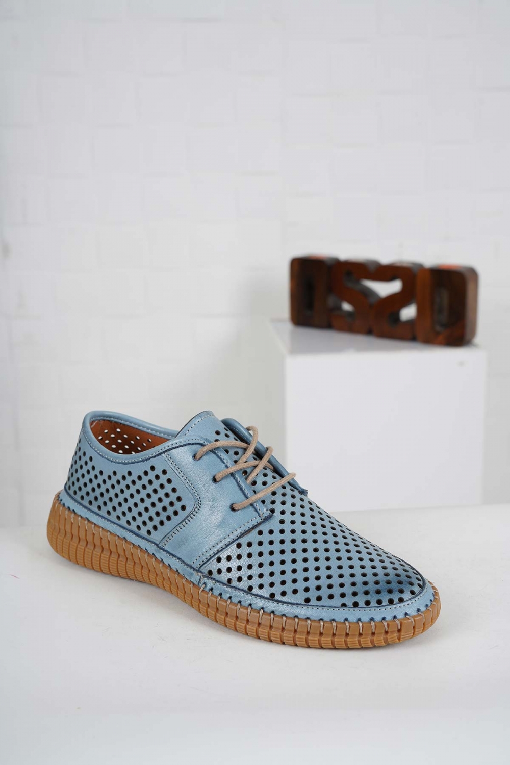 Hakiki Deri Kot Mavi Kadın Comfort Ayakkabı 241220107