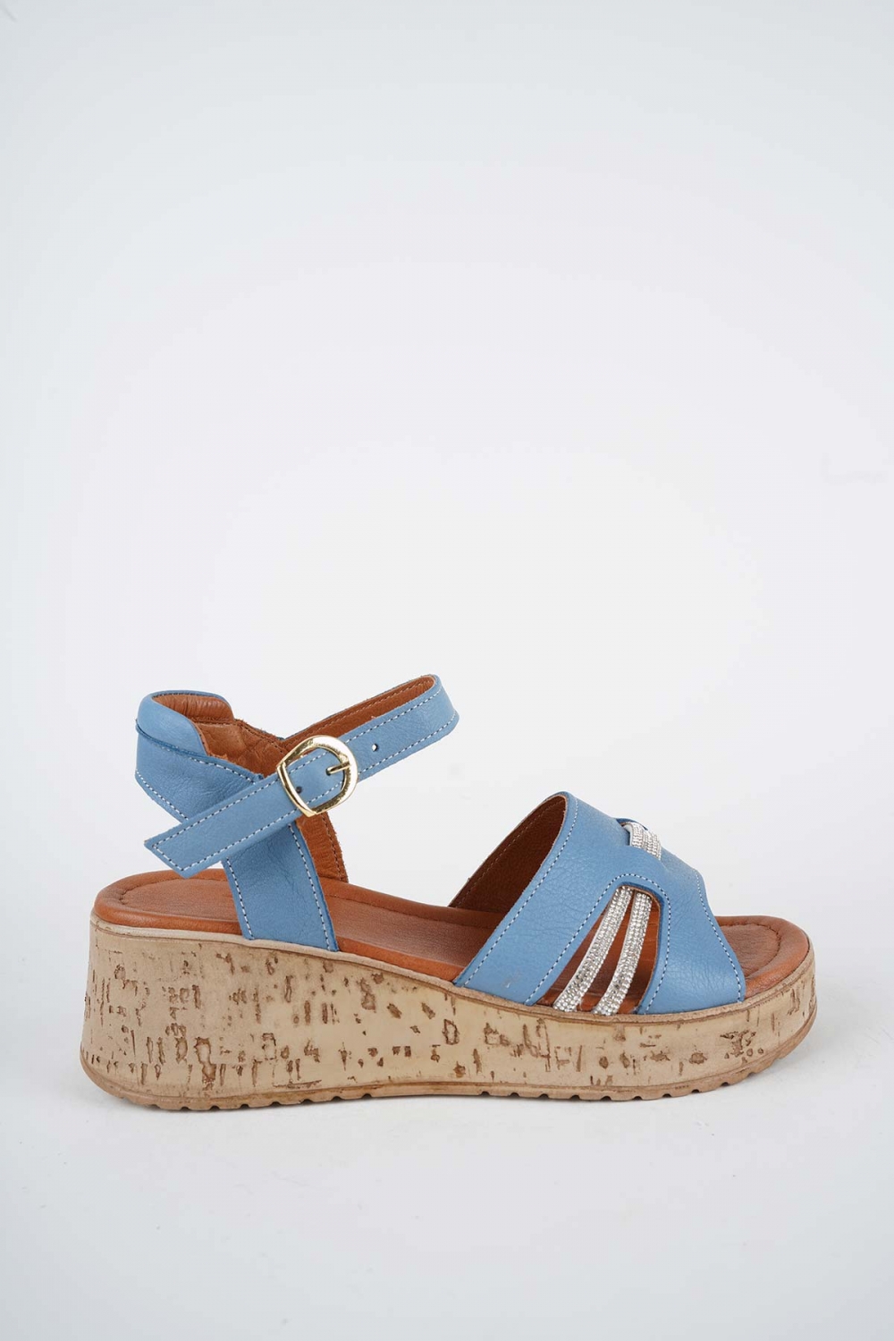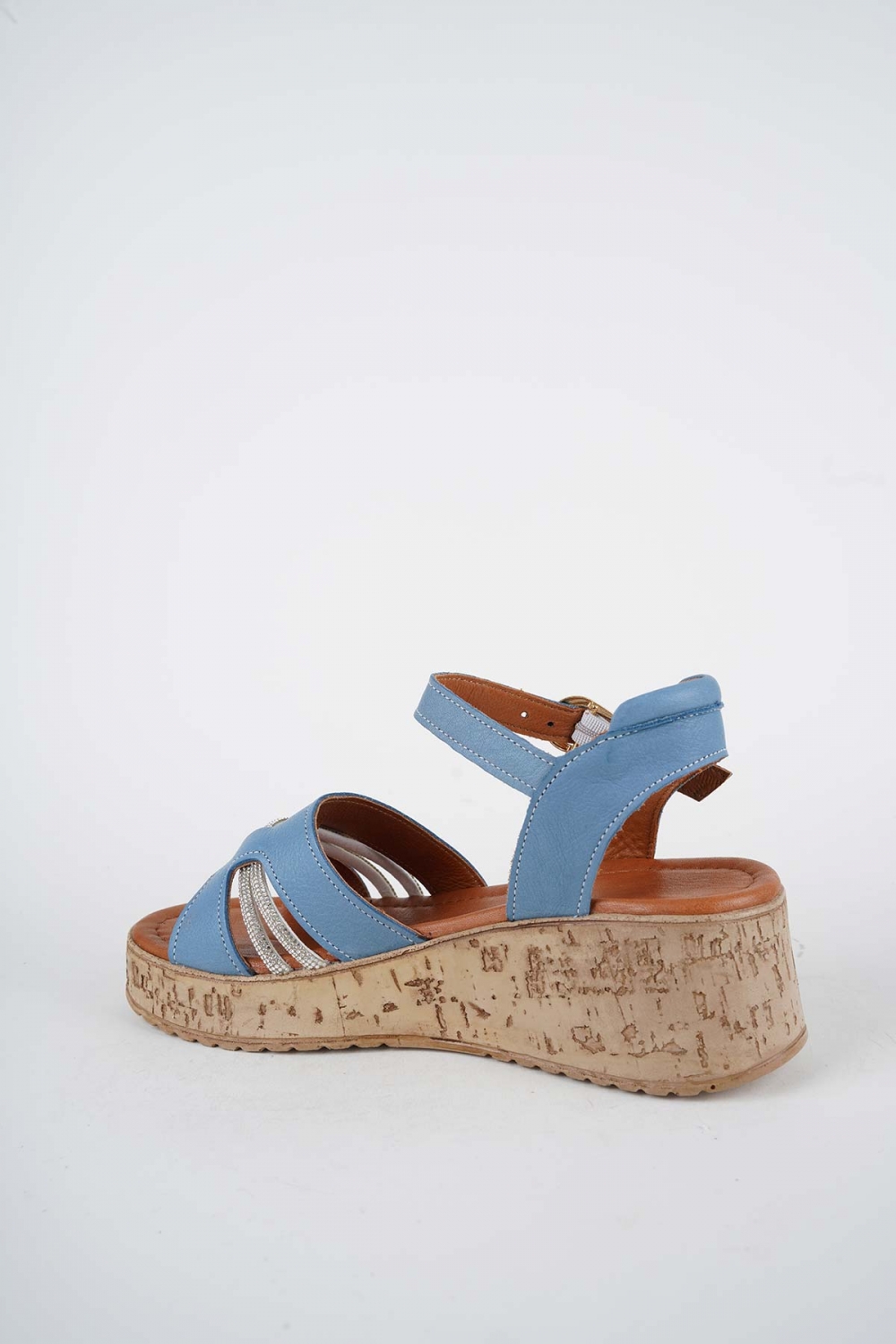 Hakiki Deri Kot Mavi Kadın Dolgu Topuklu Sandalet 261186505