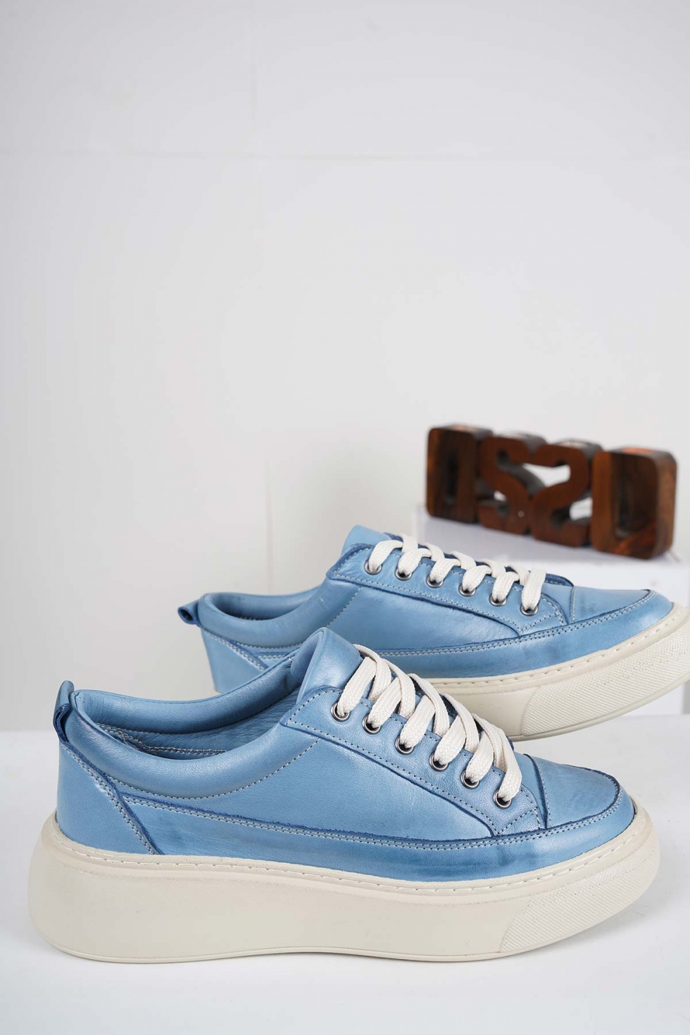 Hakiki Deri Kot Mavi Kadın Sneaker Ayakkabı 212220101