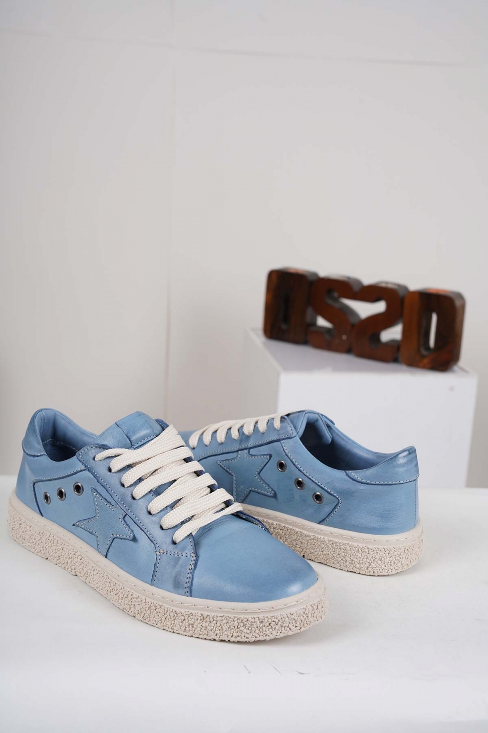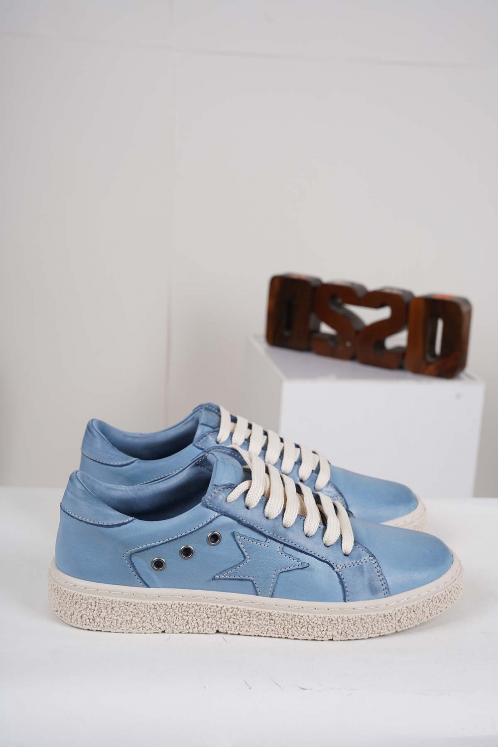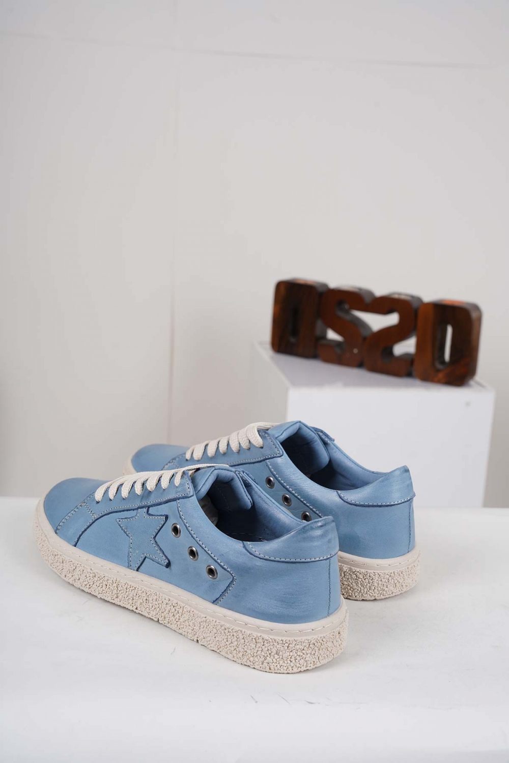 Hakiki Deri Kot Mavi Kadın Spor Ayakkabı 222220103