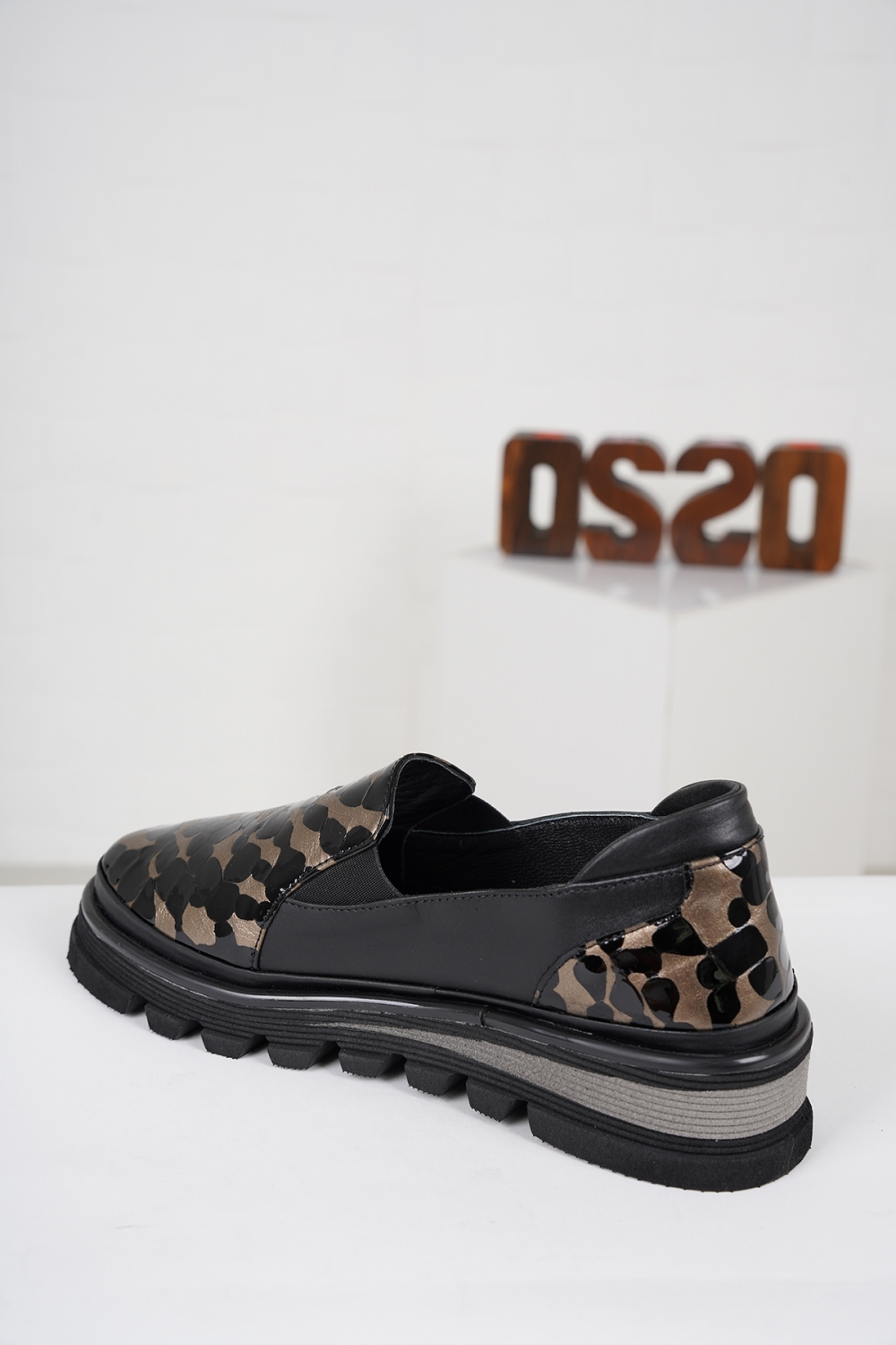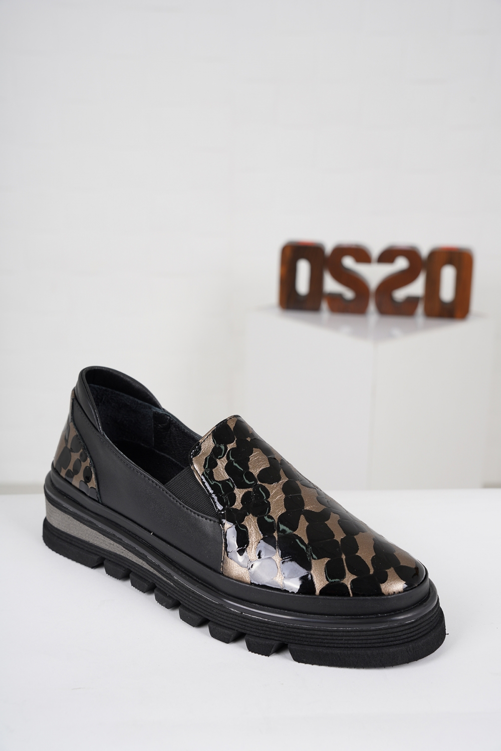 Hakiki Deri Koyu Altın Kroko-Siyah Kadın Casual Ayakkabı 222186101