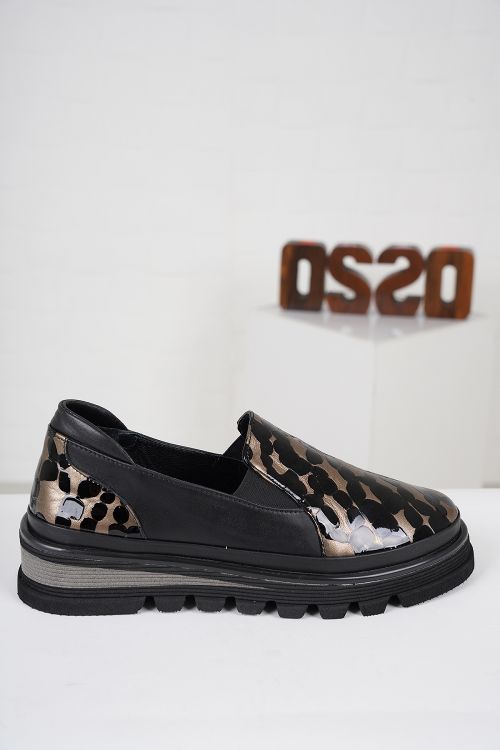Hakiki Deri Siyah-Altın Kadın Casual Ayakkabı 261186104