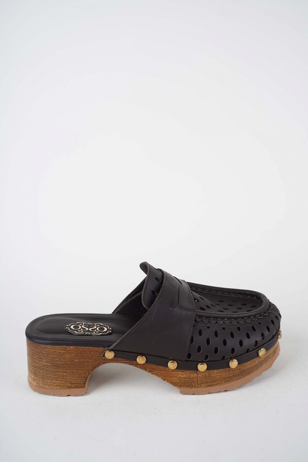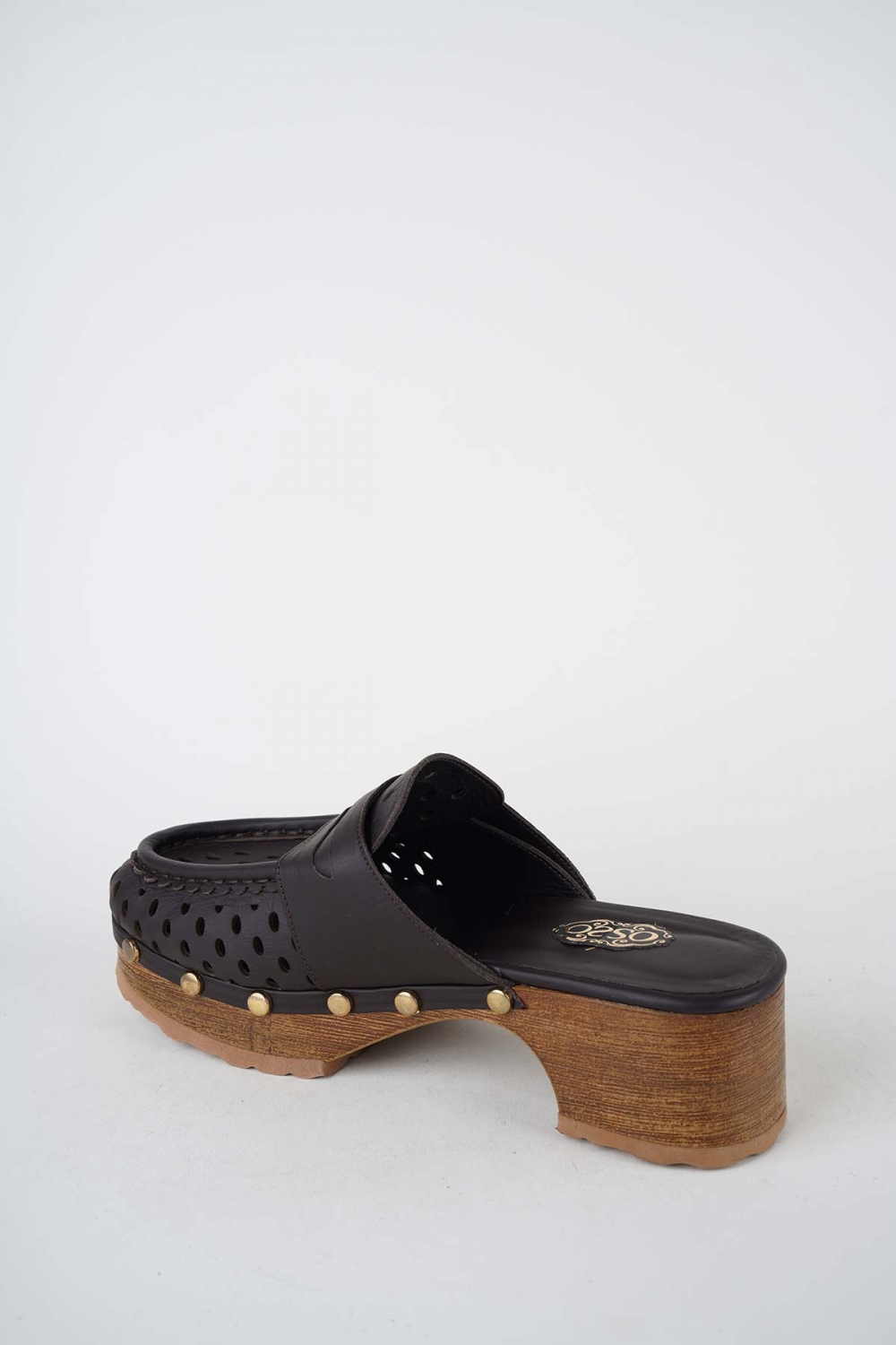 Hakiki Deri Koyu Kahve Kadın Topuklu Sabo 261114704