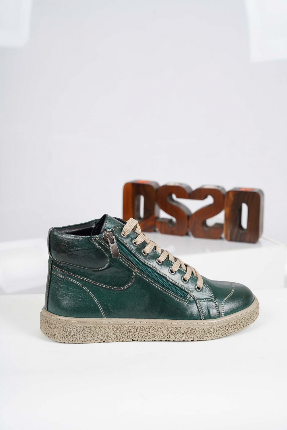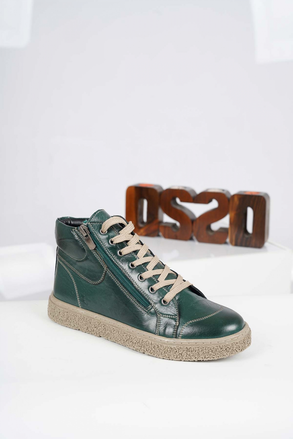 Hakiki Deri Koyu Yeşil Kadın Casual Bot 232220201