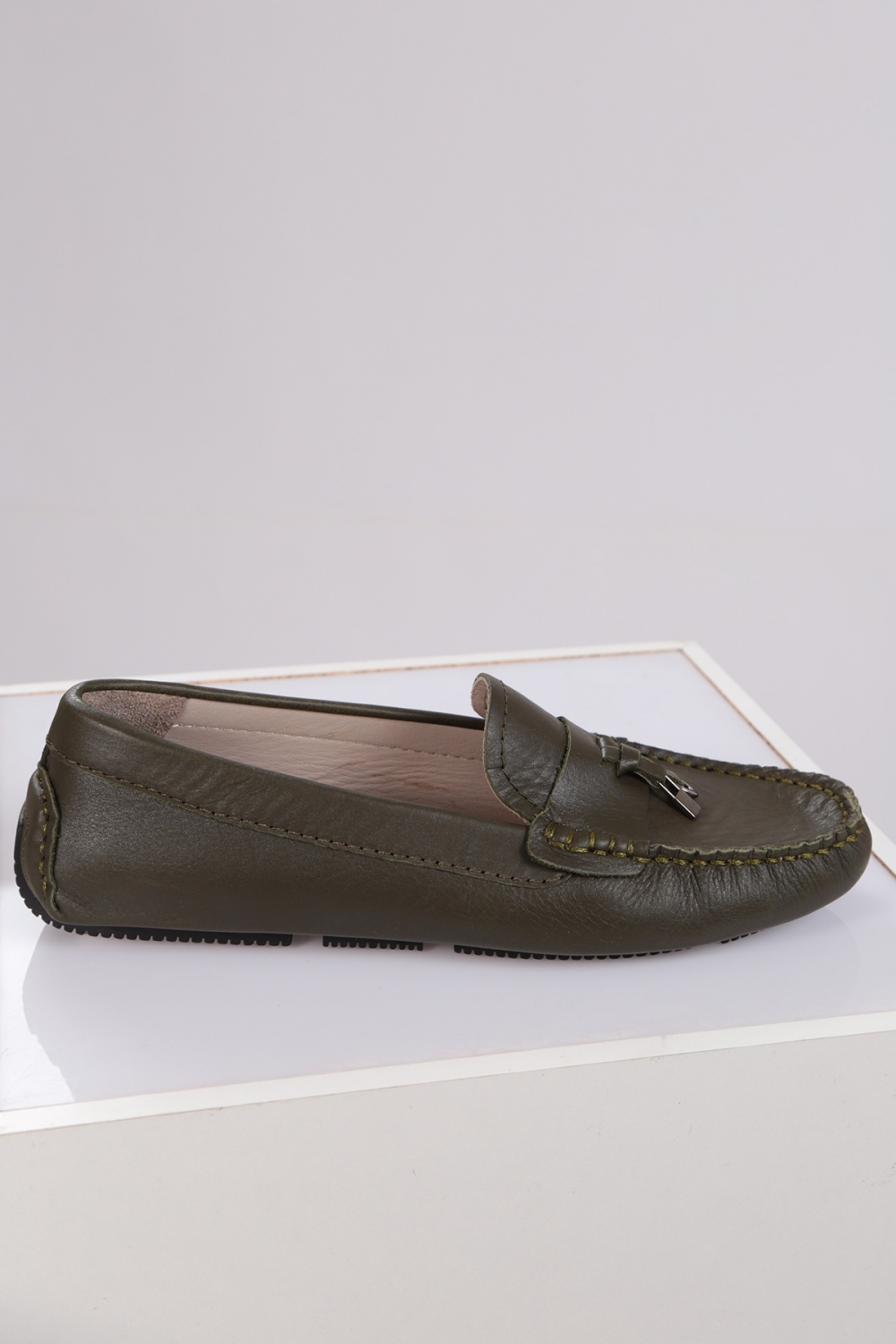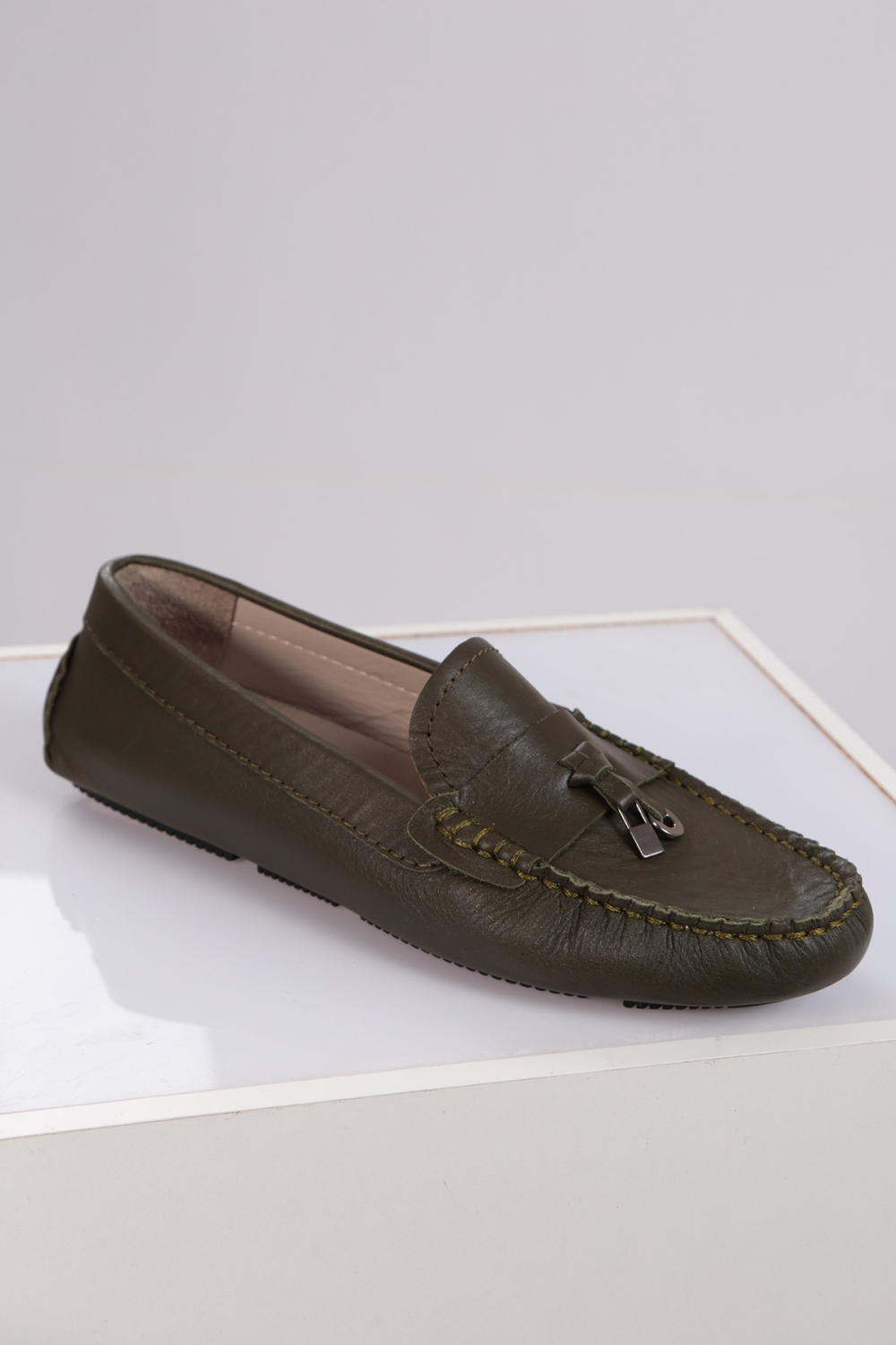Hakiki Deri Koyu Yeşil Kadın Makosen Ayakkabı 221209107