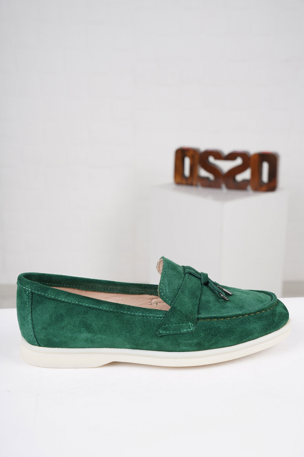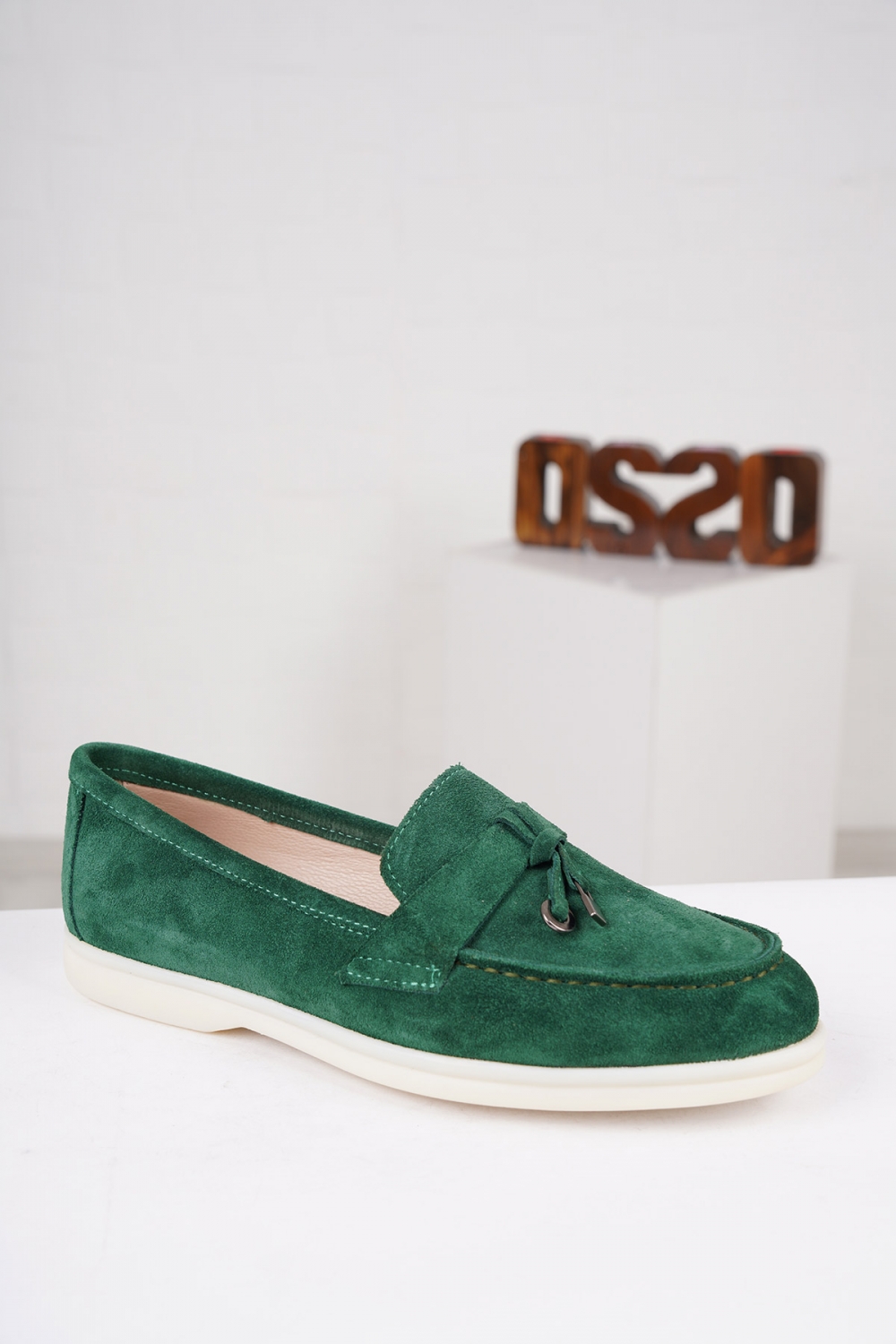 Hakiki Deri Koyu Yeşil Süet Kadın Loafer Ayakkabı 222121102