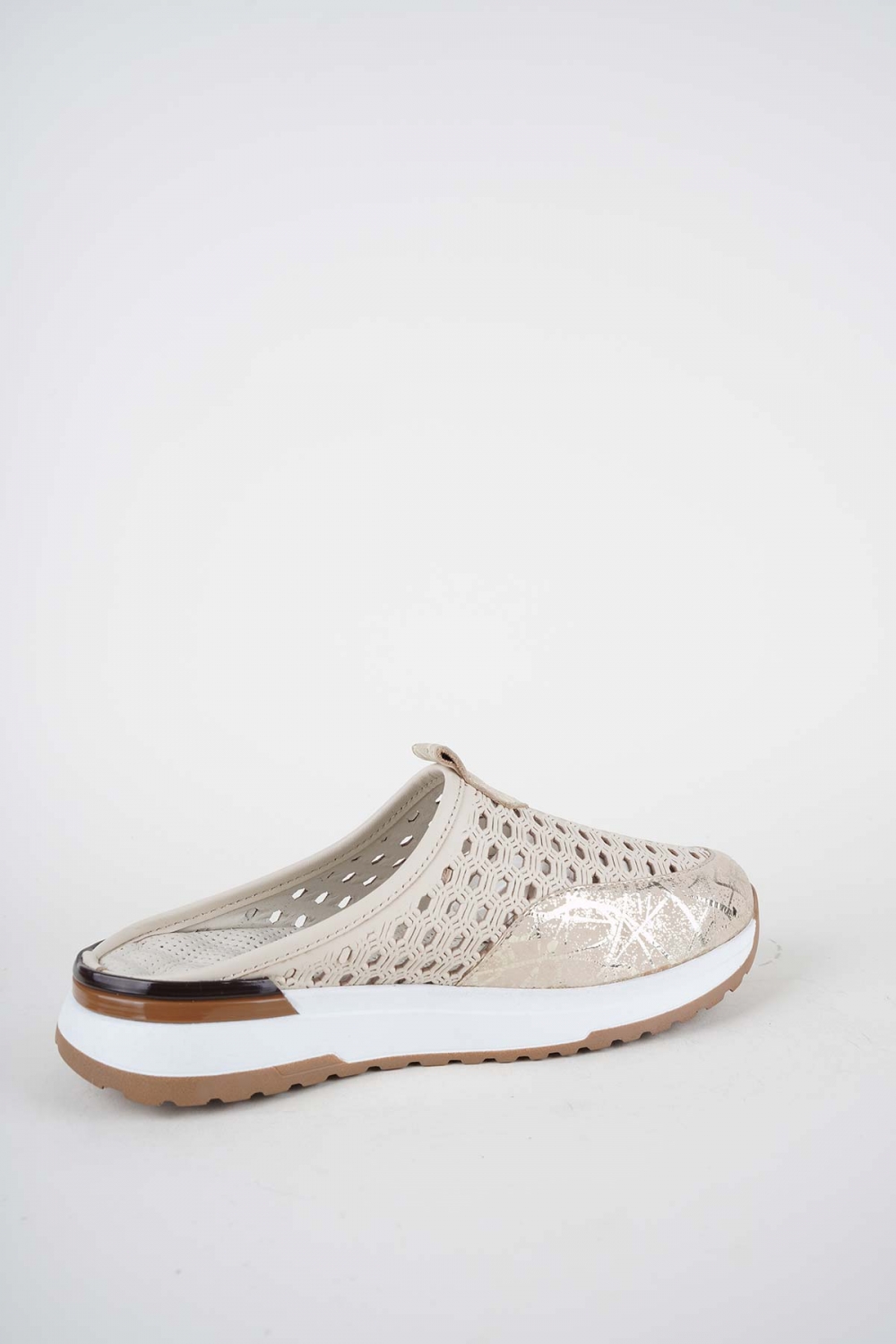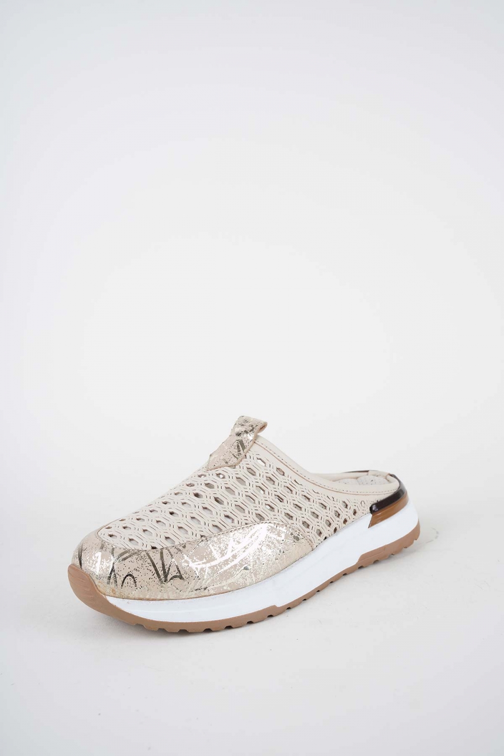 Hakiki Deri Krem-Dore Baskılı Kadın Casual Sabo 261136701