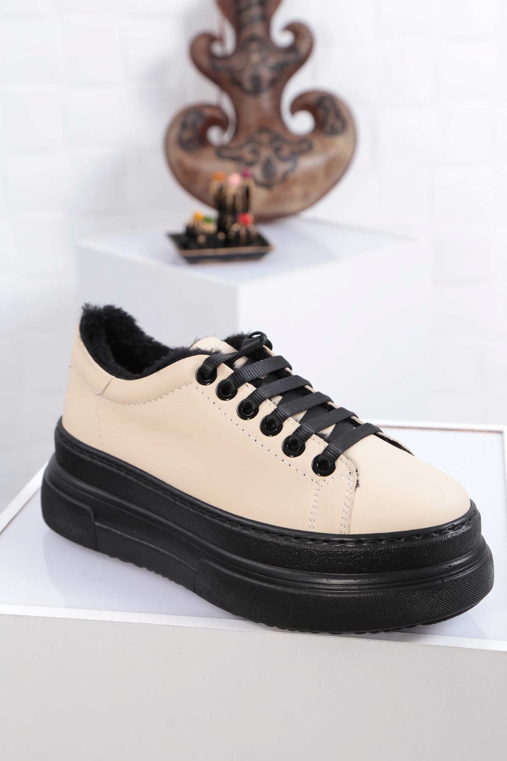 Hakiki Deri Krem Kadın Sneaker Ayakkabı 212225103