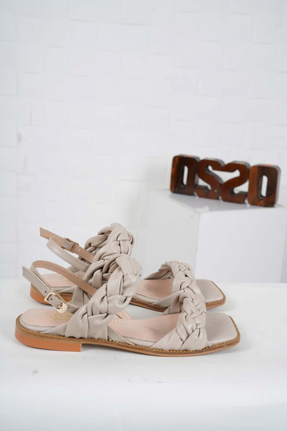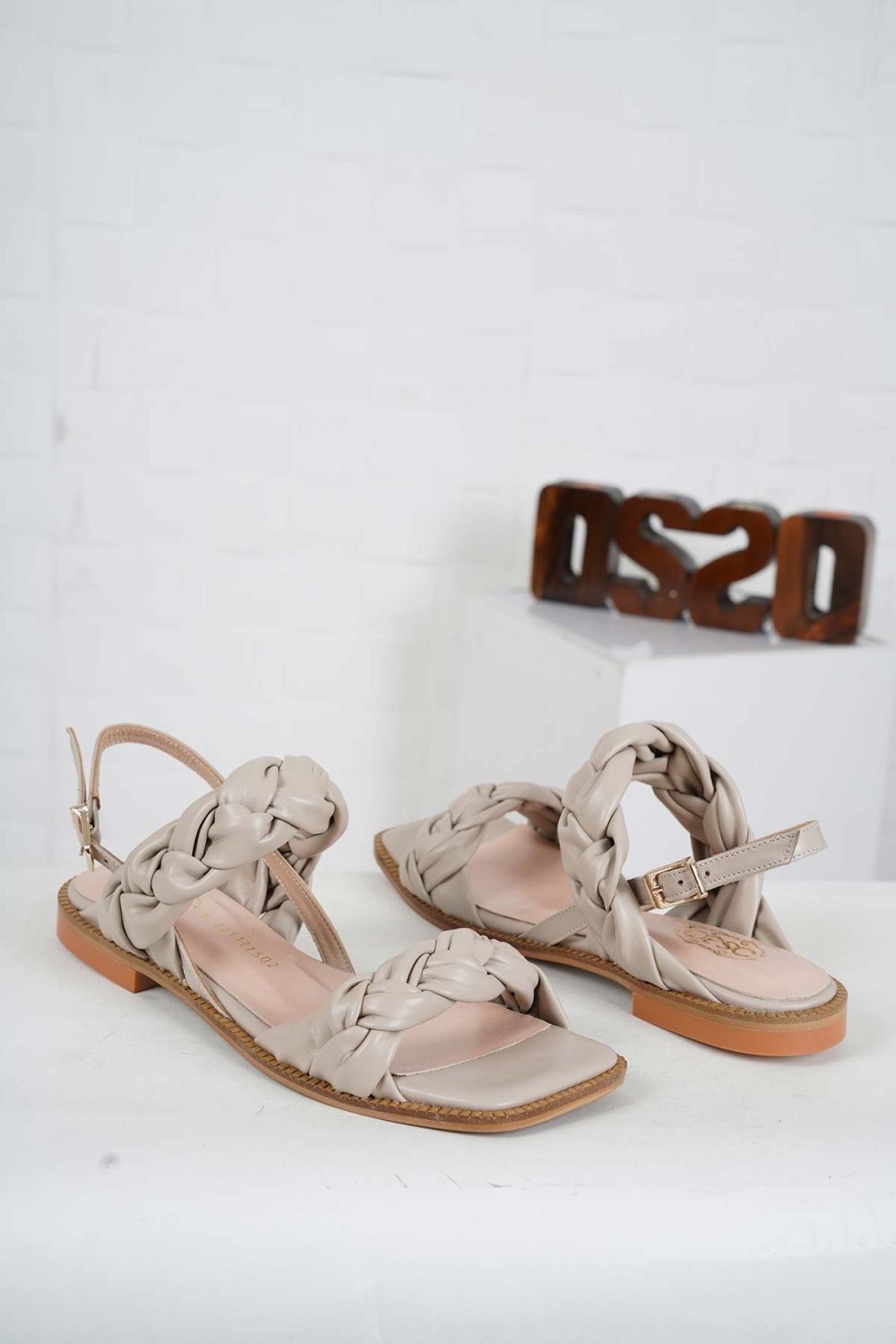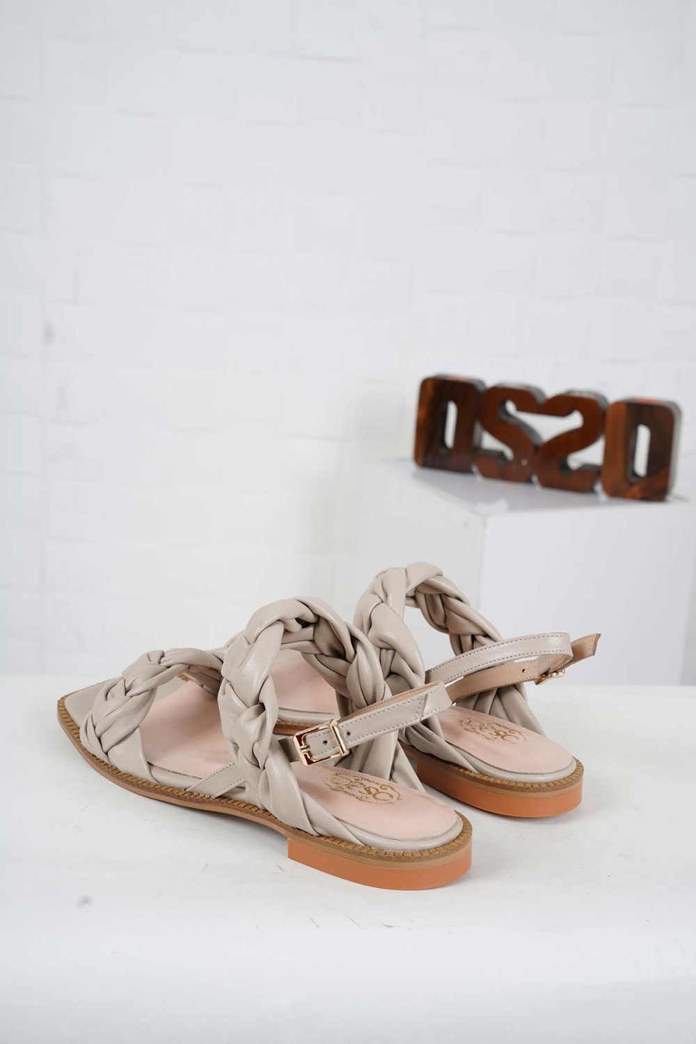 Hakiki Deri Kum Beji Kadın Düz Sandalet 221127502