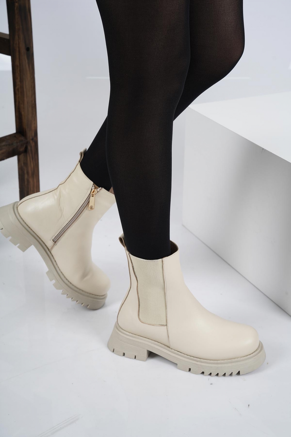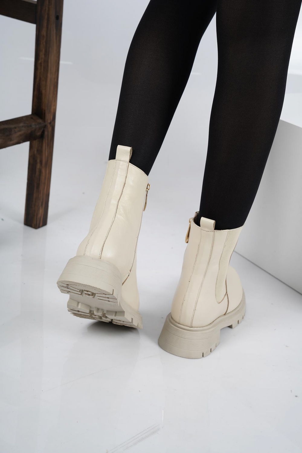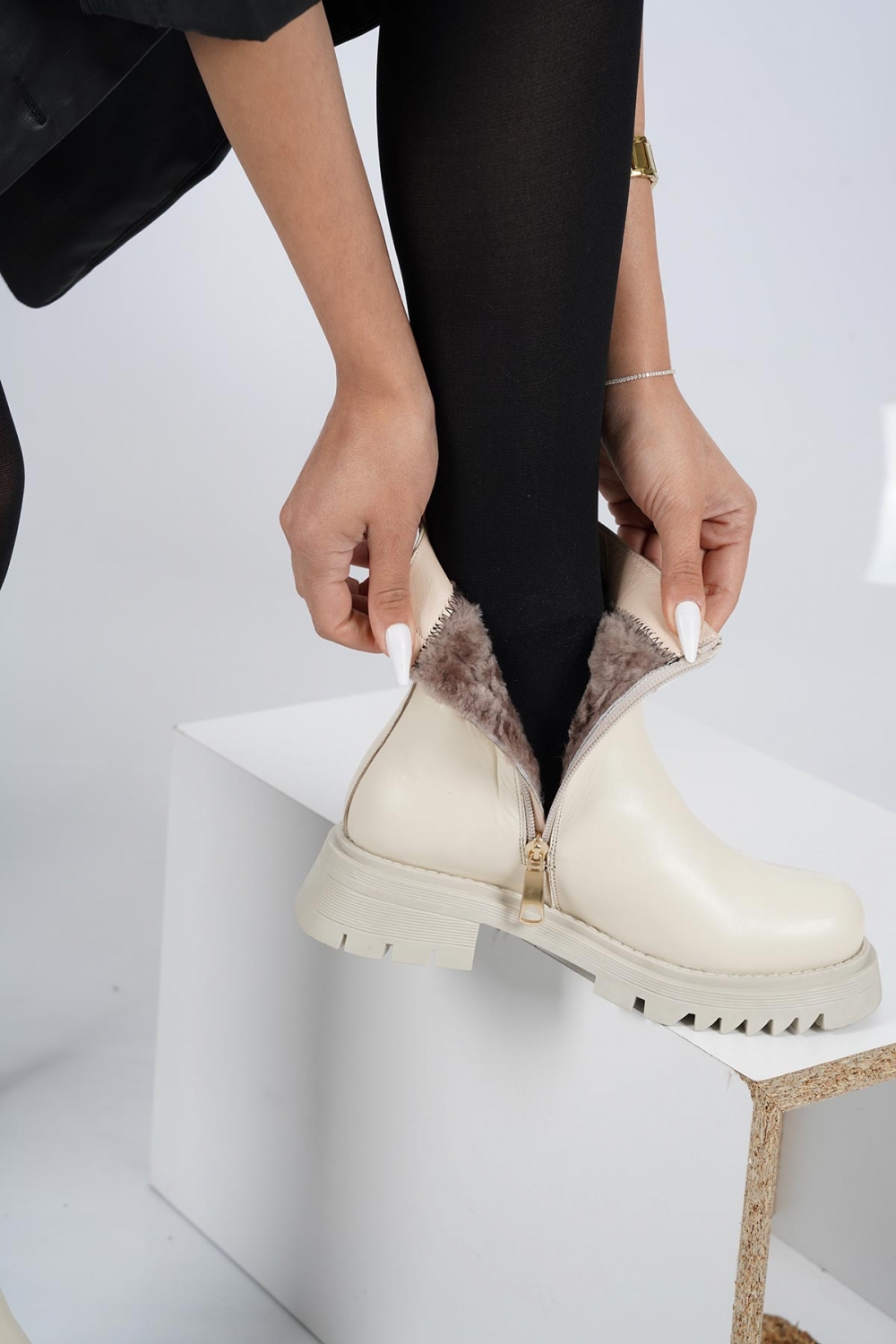Hakiki Deri Kürklü Bej Kadın Postal Bot 212127227