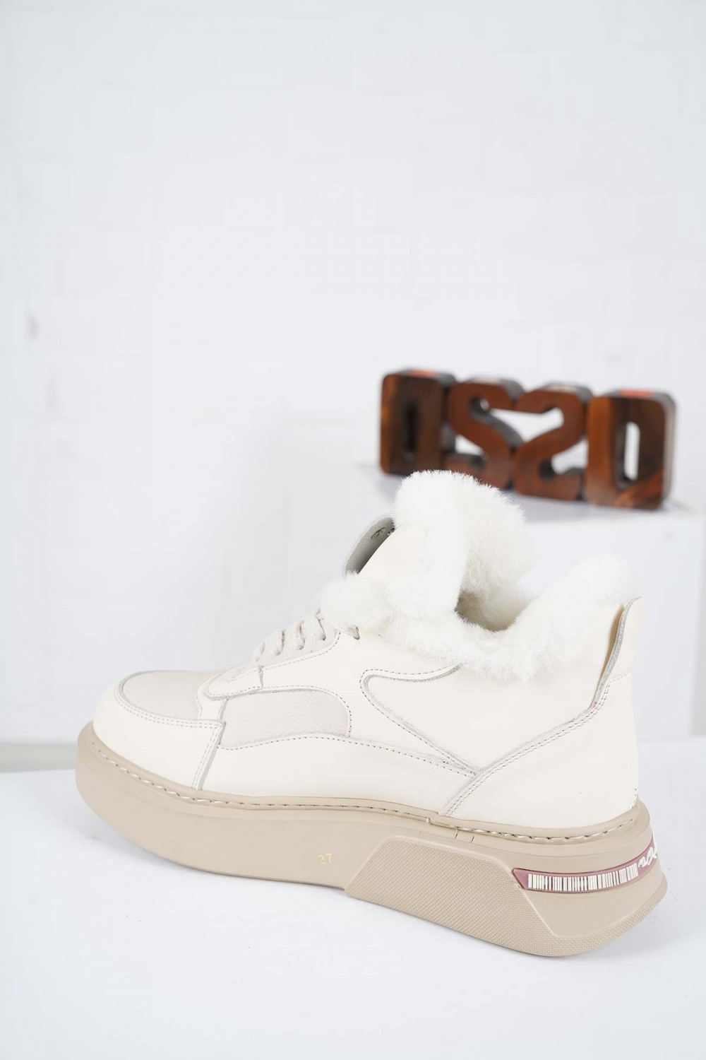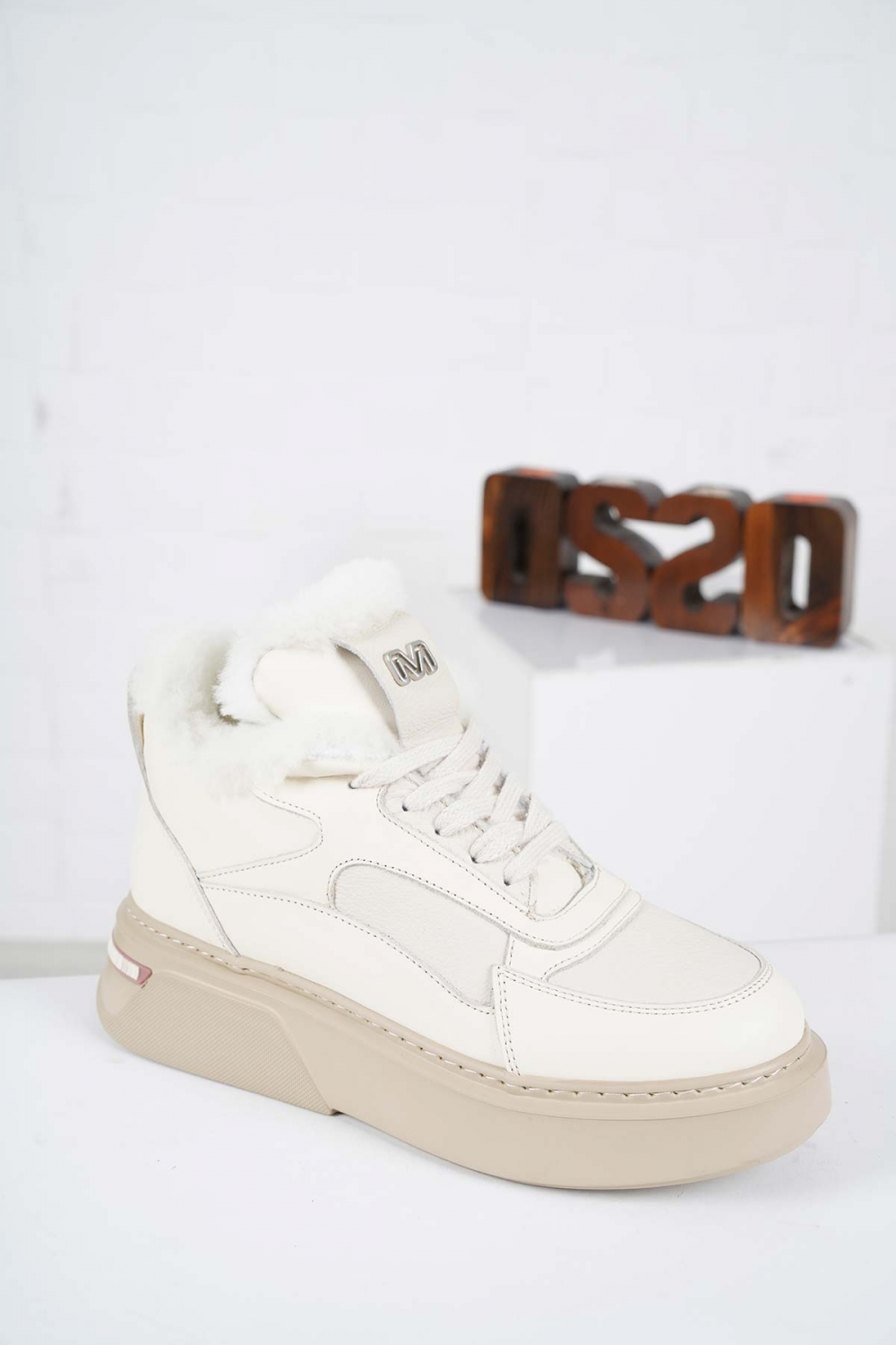 Hakiki Deri Kürklü Bej Kadın Sneaker Ayakkabı 232114104