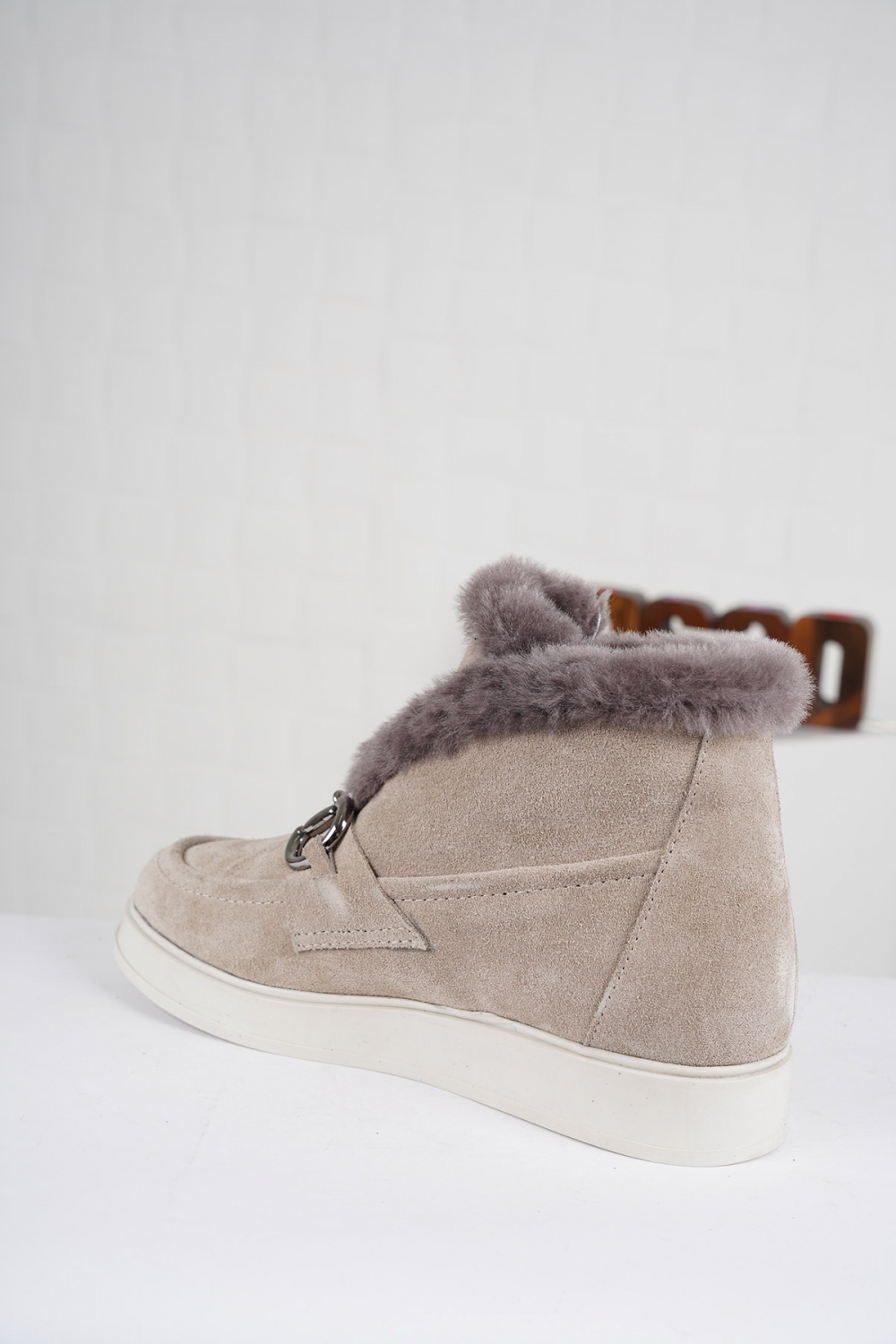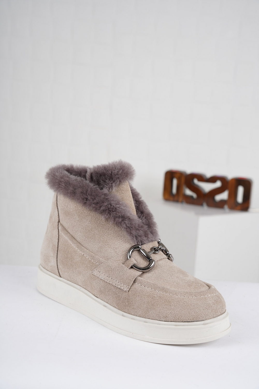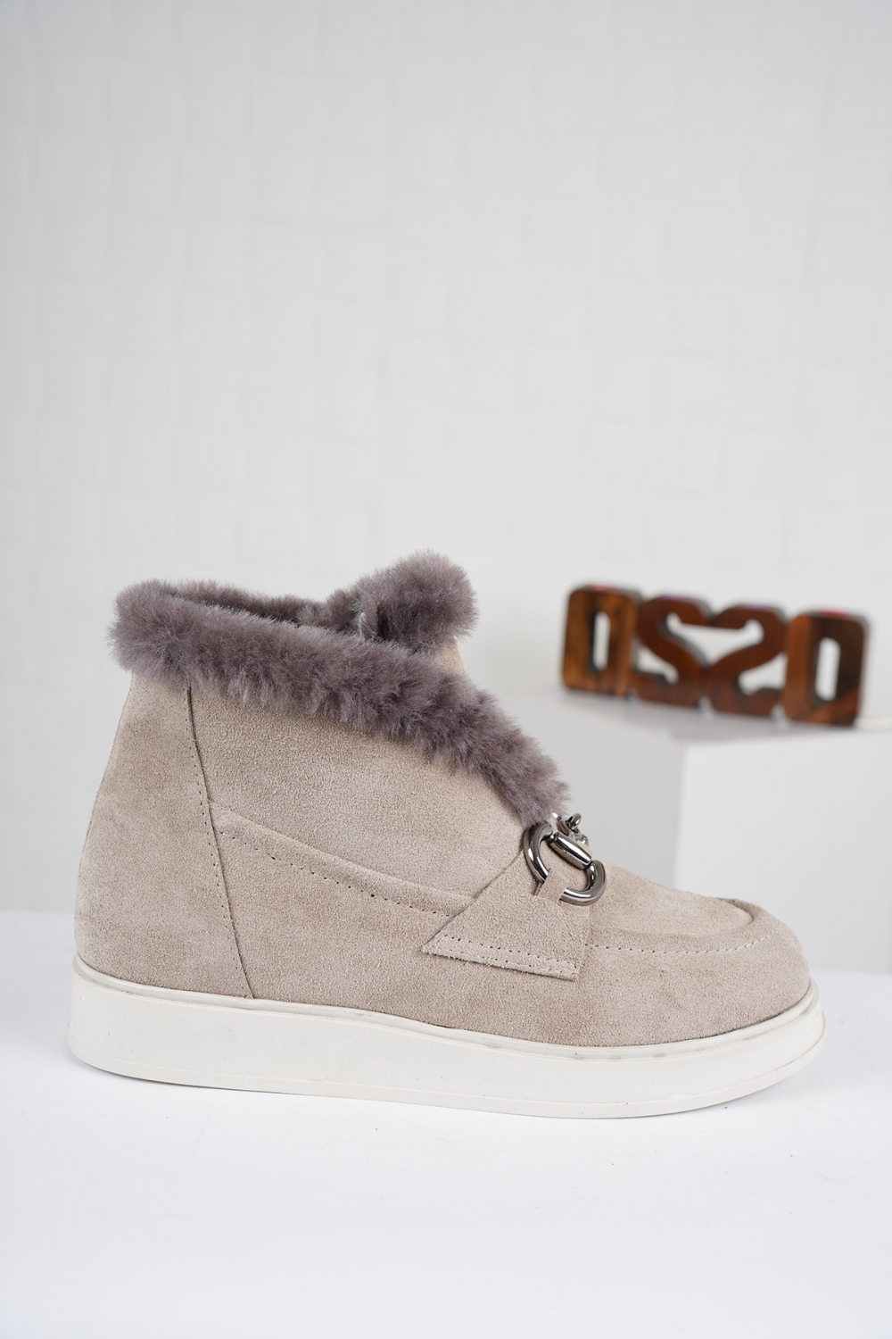 Hakiki Deri Kürklü Bej Süet Kadın Düz Bot 222244205